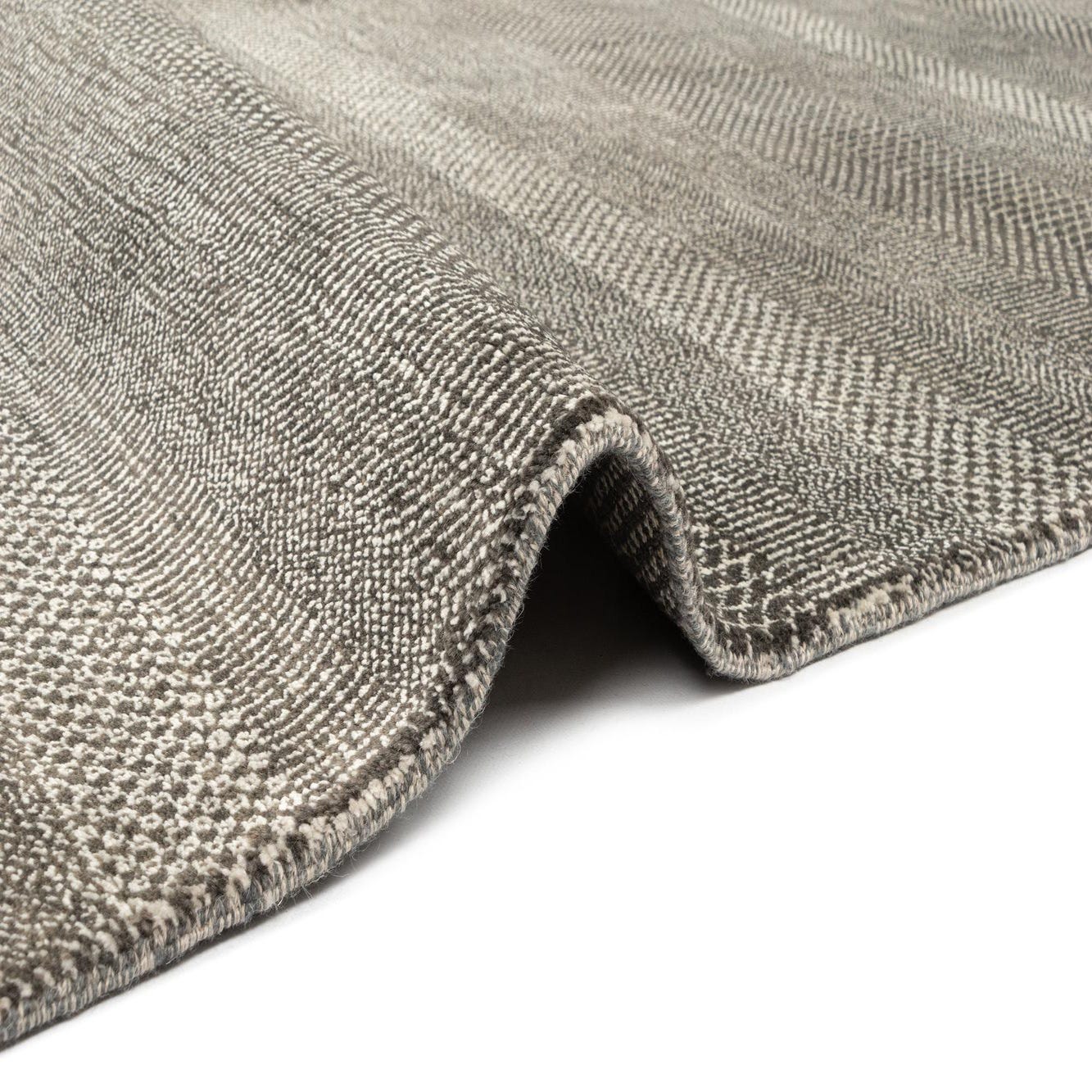 The Kamla Collection rug is a sophisticated addition to any living space, handcrafted from 100% wool, which ensures both durability and a soft underfoot experience. The generous 9x12 size provides ample coverage for larger rooms. This rug showcases a tasteful ombre pattern, transitioning through shades of gray, which imbues it with a sense of depth and movement. The subtle variance in tones allows it to integrate seamlessly with a range of color schemes.