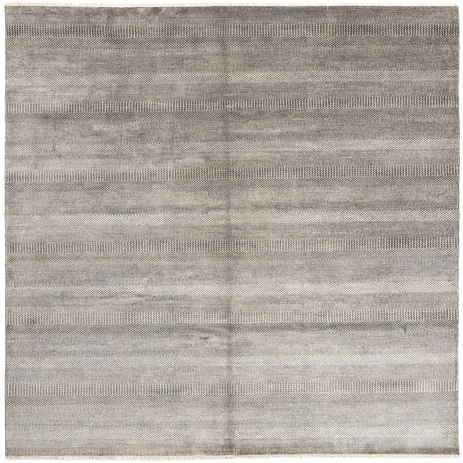A 9x12 rectangular Kamla Persian rug in varying shades of gray, featuring a subtle striped and textured pattern.