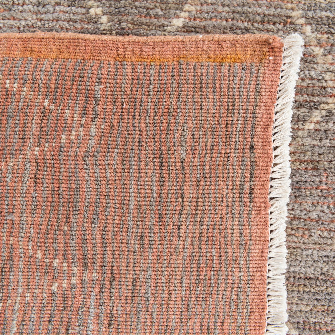 Fringe details add a traditional touch to the rug's edges, enhancing its authentic handcrafted appeal. The combination of its muted color palette and timeless pattern ensures versatility in interior design applications. This rug would fit seamlessly into a range of decor styles, from a contemporary living space that values understated elegance to a bohemian-inspired room where it can serve as a grounding element amidst more eclectic furnishings. Its size and visual impact make it an excellent choice for anchoring a main living area, underpinning a dining set, or defining an open-plan living space.