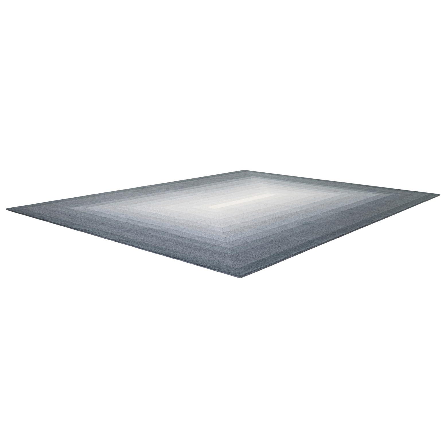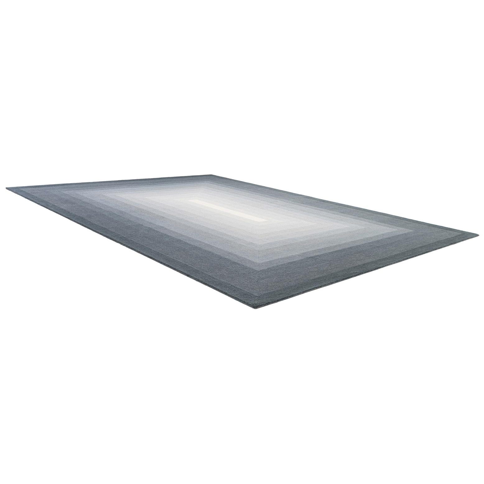 A rectangular 9x12 gray wool area rug featuring a gradient ombre pattern of concentric rectangles fading from dark gray to light silver at the center.