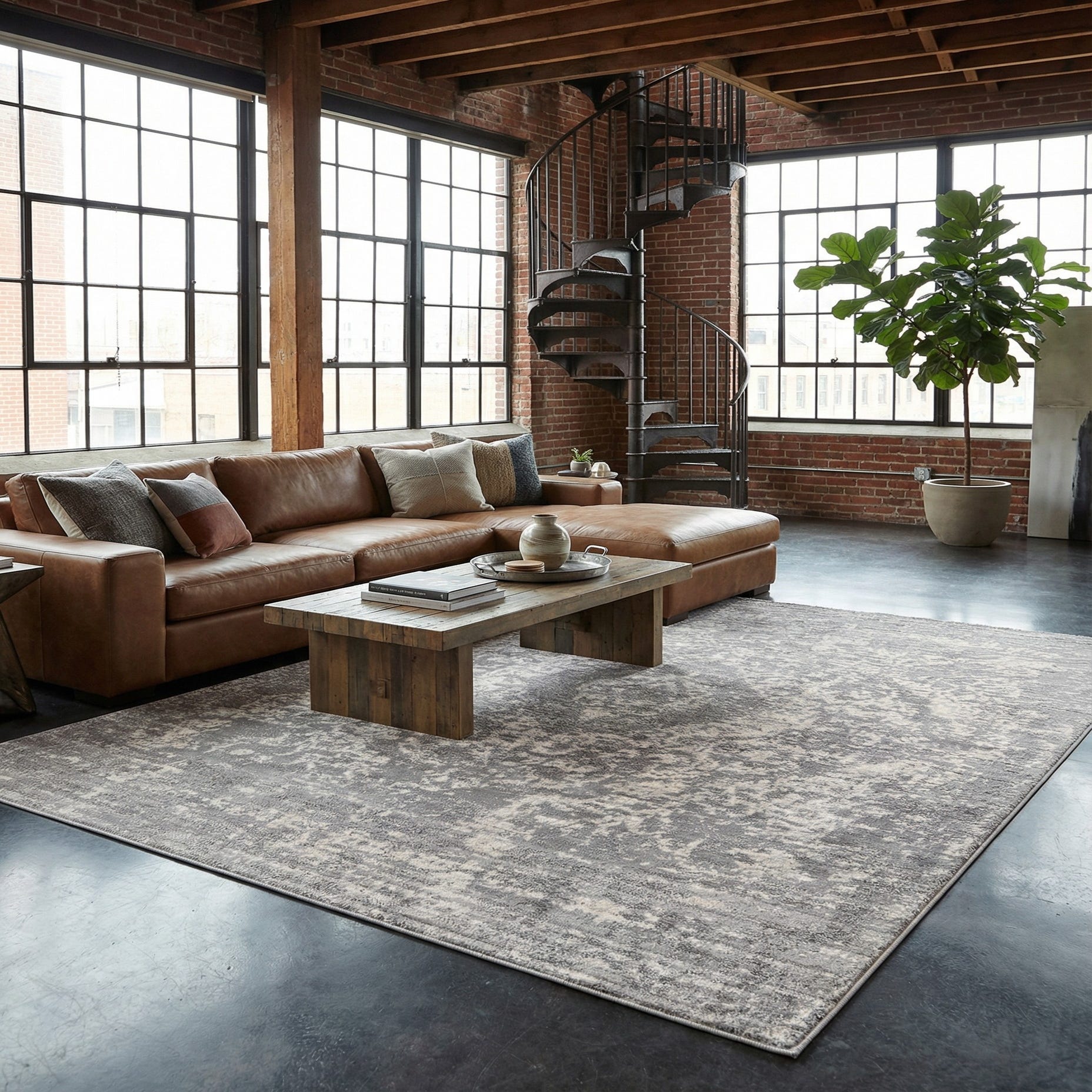 This neutral gray-and-ivory palette and transitional pattern work well in a variety of interiors: place it beneath a living room seating group to ground modern sofas, layer it under a bed to introduce quiet texture in a calming bedroom, or use it to balance a dining area with mixed-material furnishings. It pairs naturally with light- or medium-tone woods, matte metal accents, and linens in warm neutrals or cool tones, fitting clean-lined contemporary, Scandinavian, farmhouse, or classic-modern schemes.