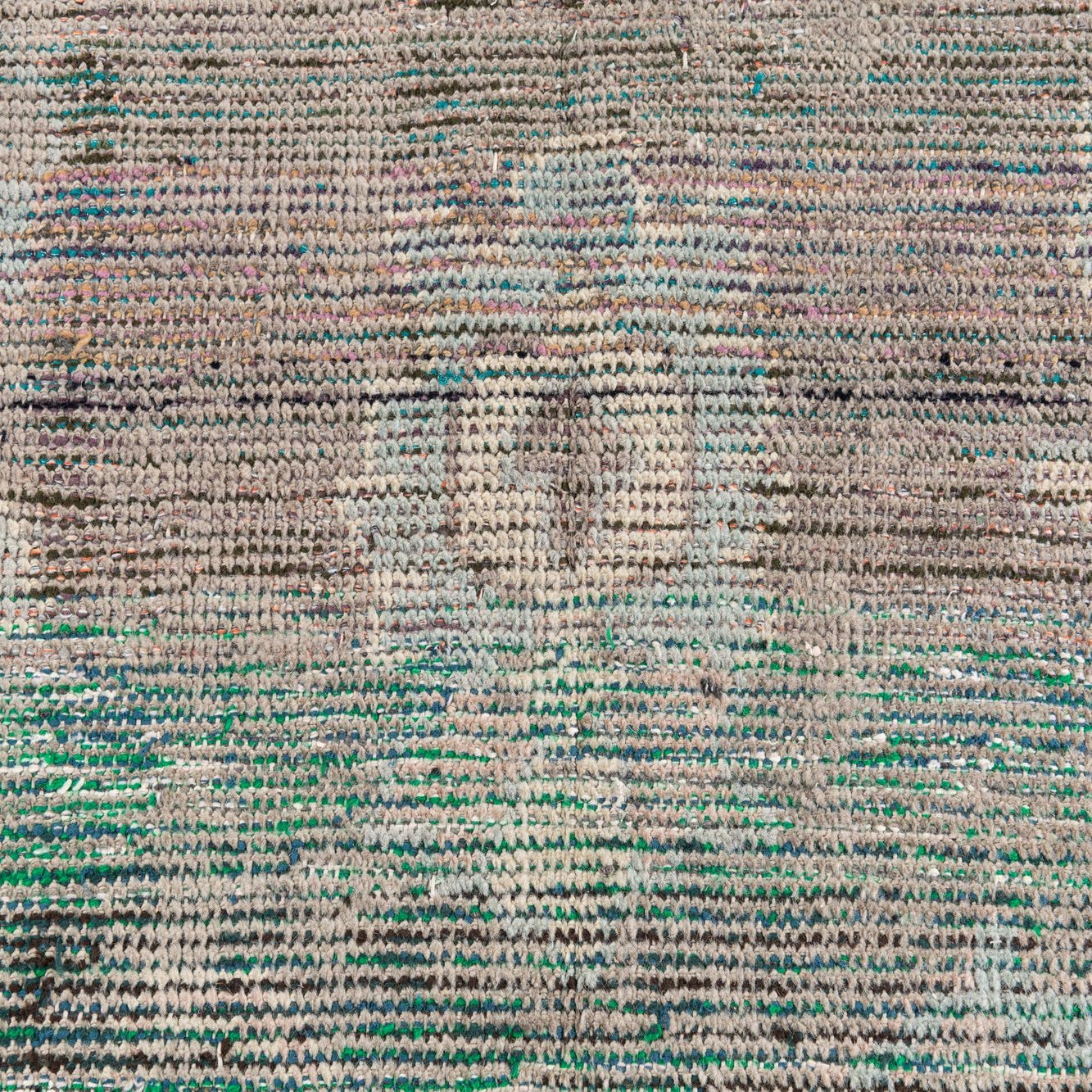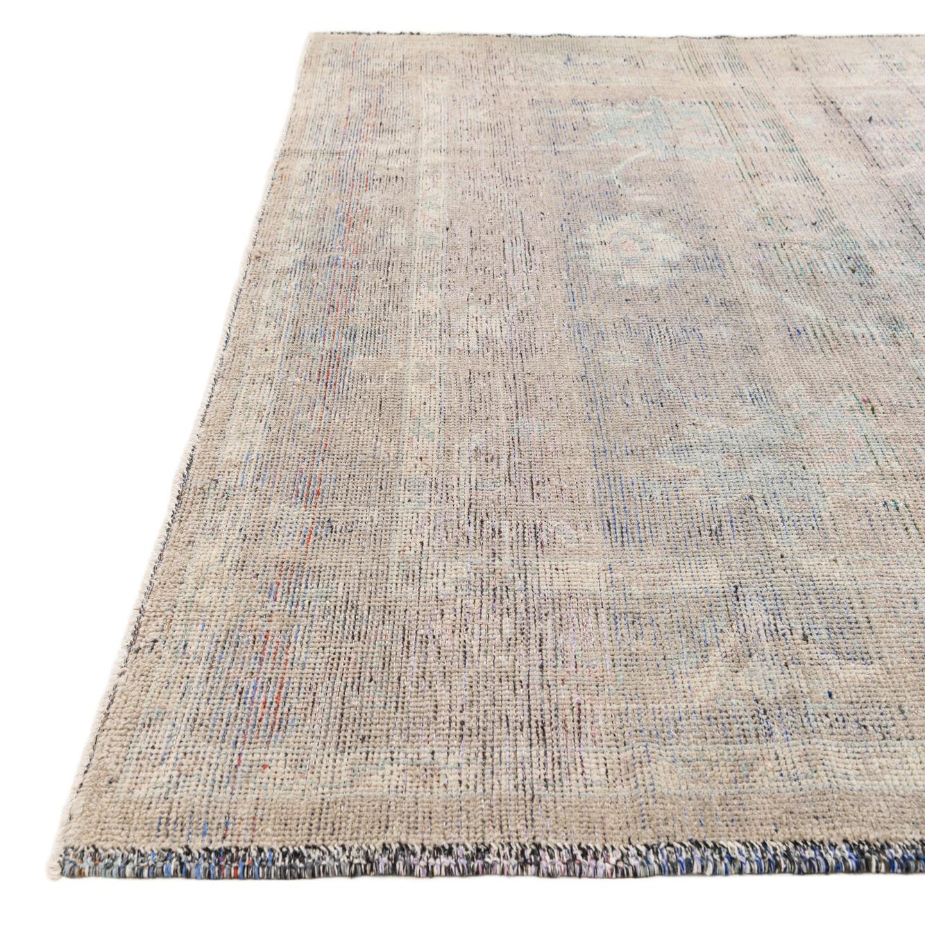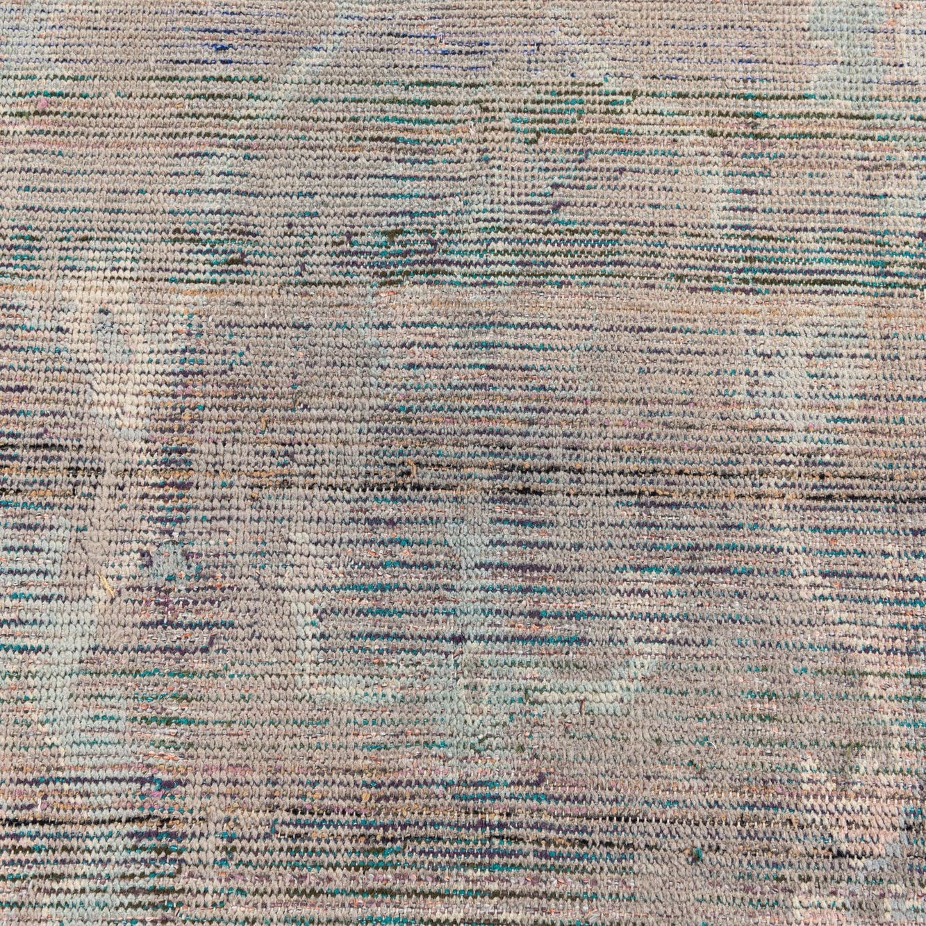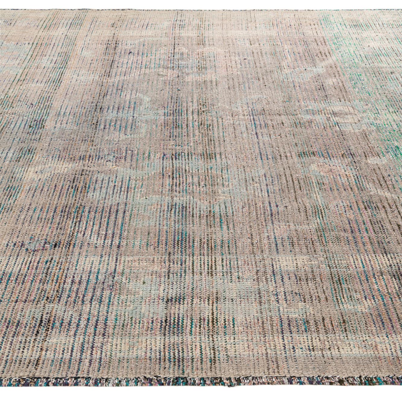 A 9x12 rectangular modern Oushak rug in shades of gray and silver with subtle distressed patterns, suitable for a living room.