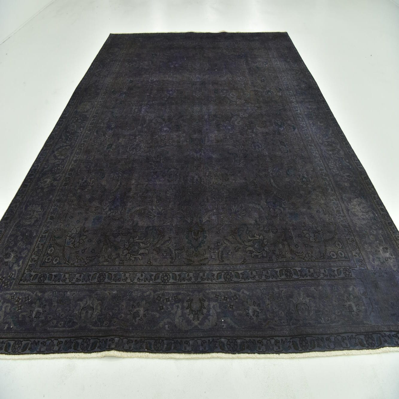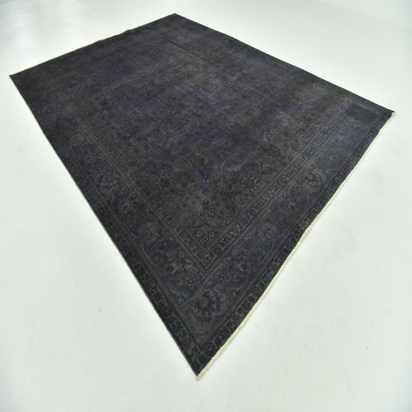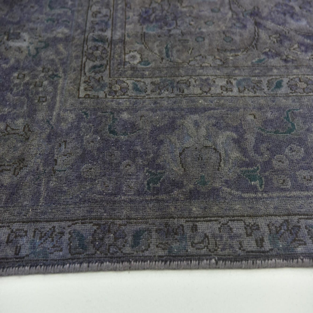 This Persian Ultra Vintage rug is an antique Persian Rug that has been washed, over-dyed, and then shaved down to a low pile. Look at the detail pictures to fully appreciate the uniqueness of this piece.