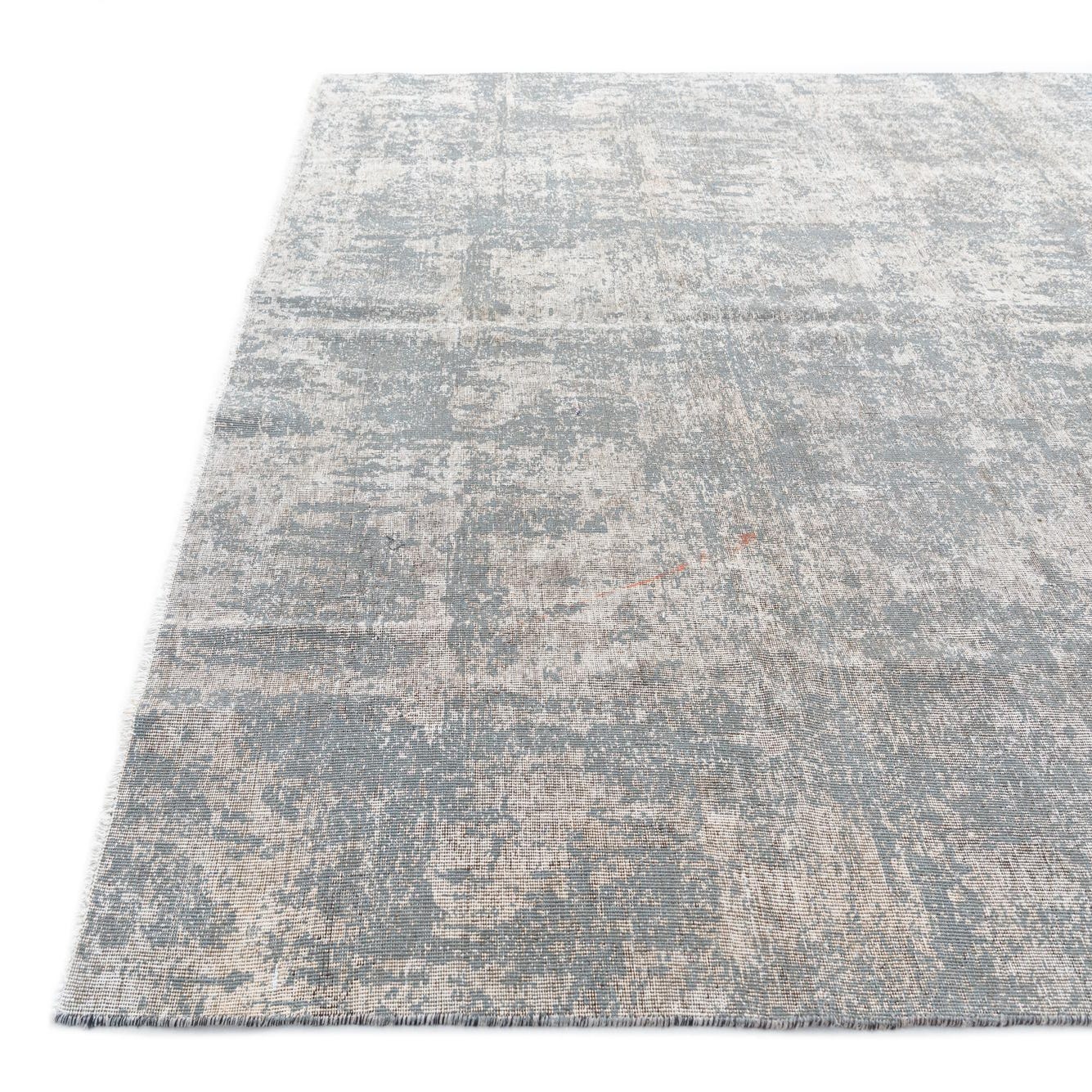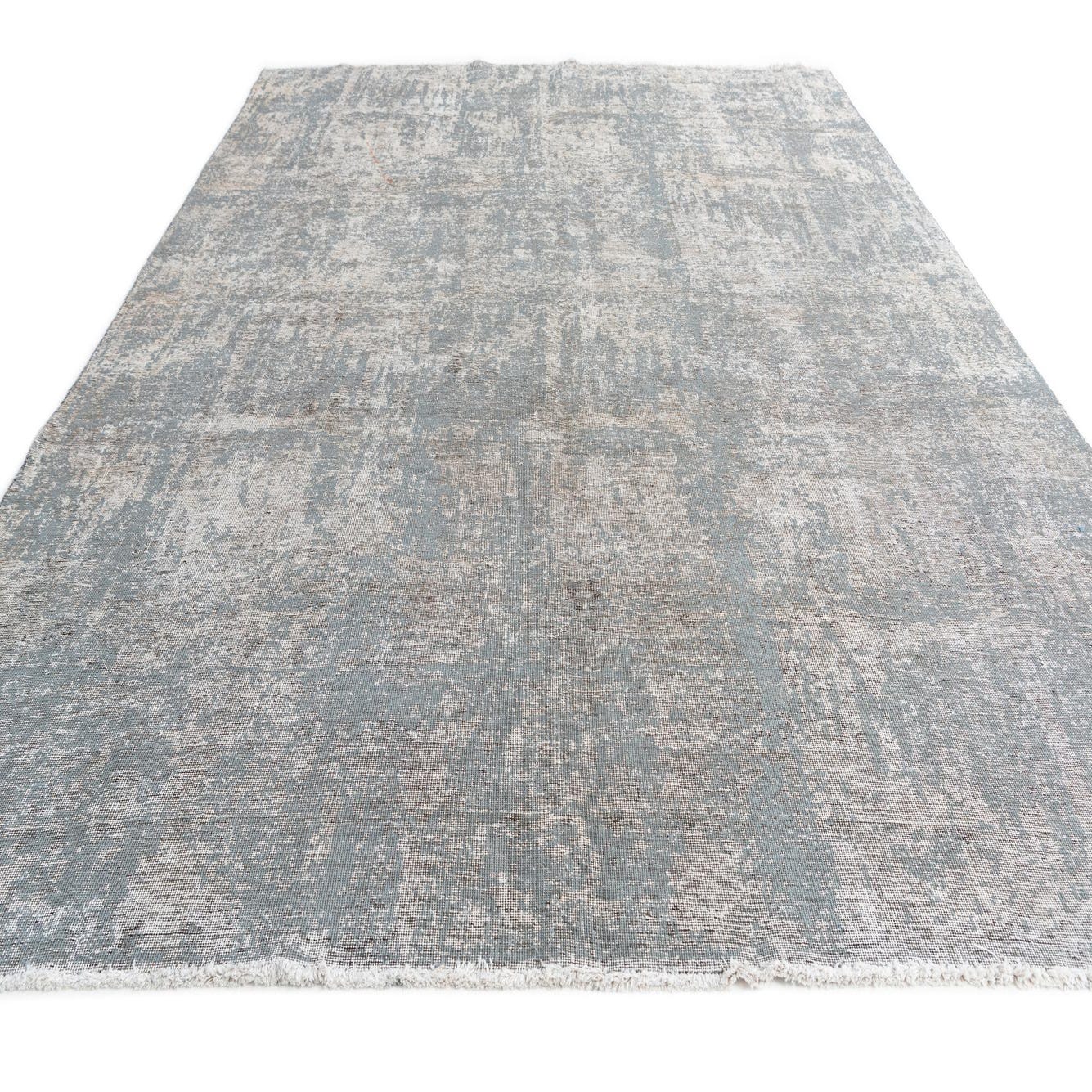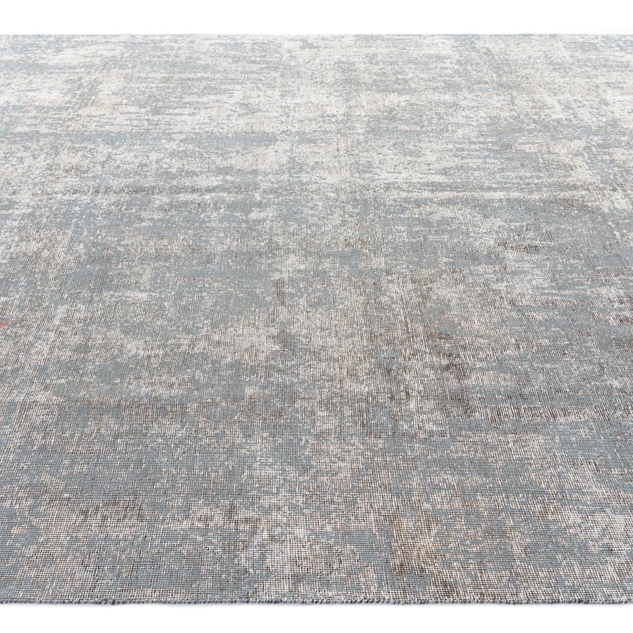 A 9x12 rectangular gray and silver wool area rug with a distressed Persian-inspired abstract pattern.