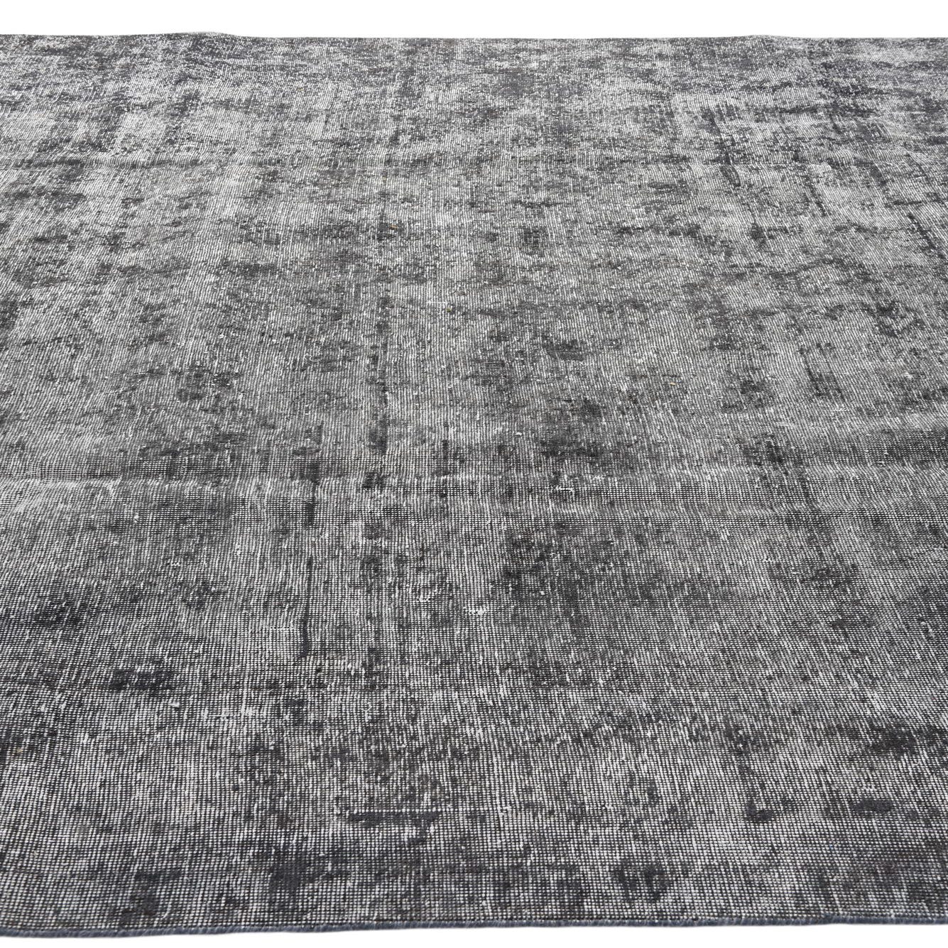 A 9x12 rectangular gray wool area rug with a distressed vintage Persian pattern, suitable for a living room.