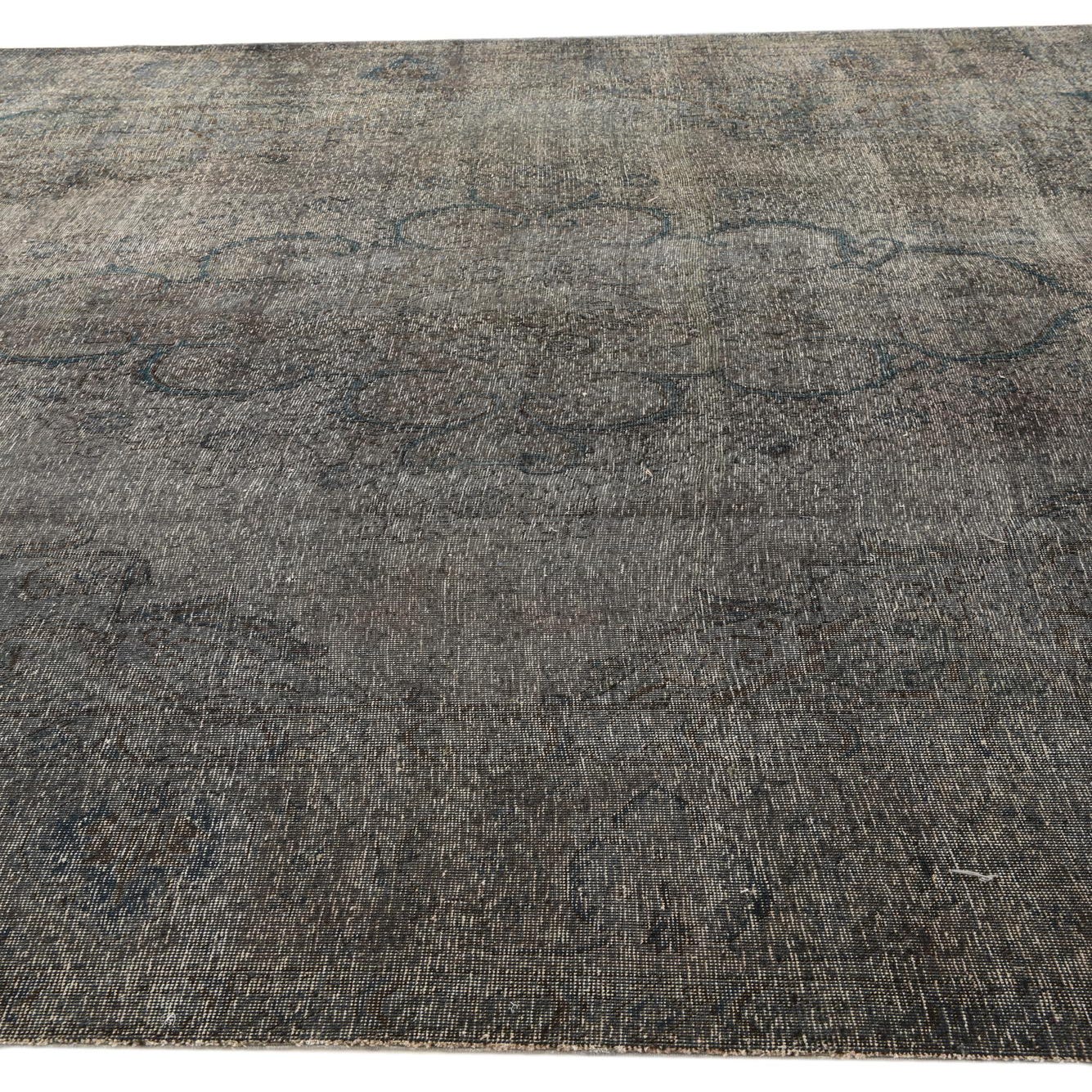 This Ultra Vintage collection rug is a hand-knotted 9x12 piece meticulously crafted from 100% wool, offering a luxuriously dense pile with enduring durability. The rug's pattern exhibits a subtle, time-worn aesthetic that combines traditional motifs with a contemporary color palette. Its gray background is accented by understated hues of blue and brown, providing a serene foundation for various interior styles.