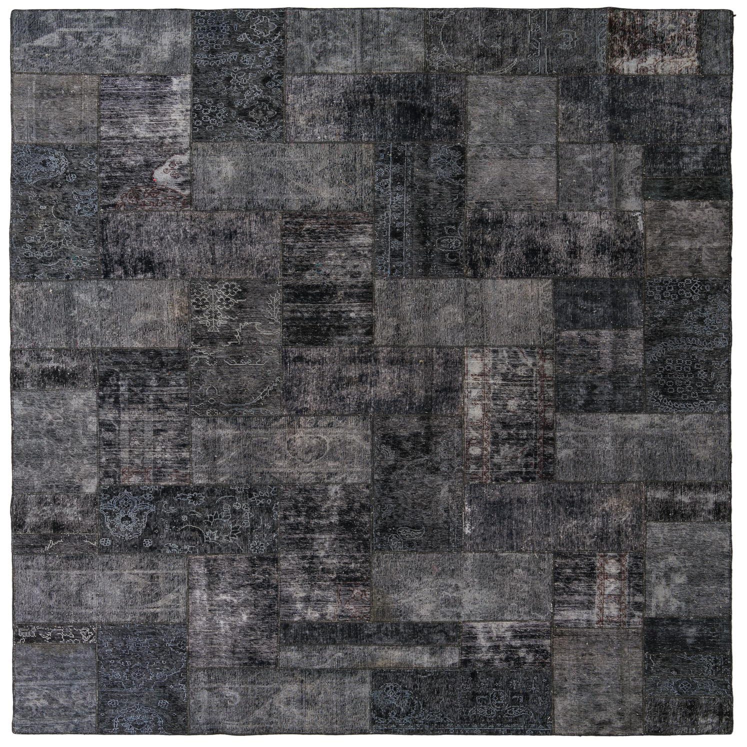A 9x12 rectangular Ultra Vintage rug in various shades of gray and silver, featuring a distressed patchwork design with subtle Persian and abstract patterns, ideal for a living room.