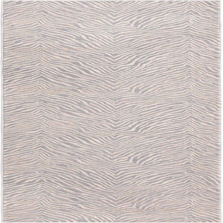 A stylized zebra stripe runs the length of this runner, forming a mirrored chevron down the center that adds subtle movement without overwhelming a space. The design pairs ivory stripes with a soft gray ground for a calm, tonal contrast that draws the eye along a hallway or entry. The surface has a low, slightly textured pile that feels soft underfoot while maintaining a clean, tailored appearance.
