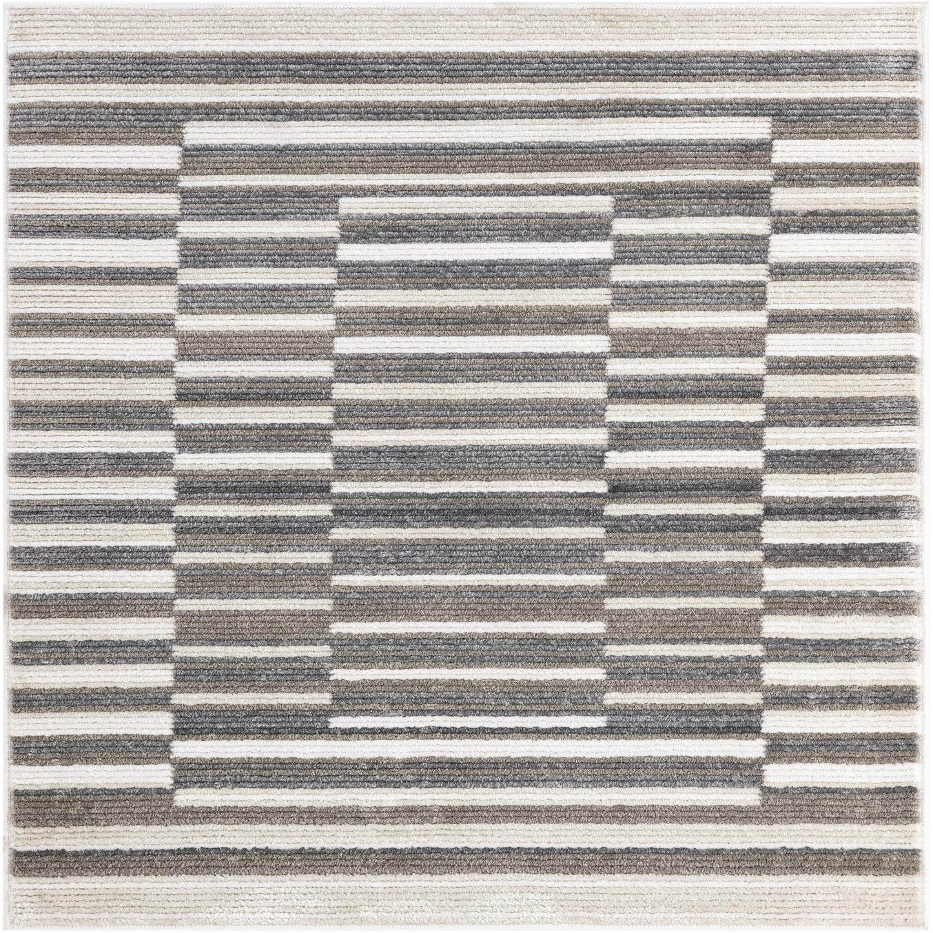 A 4x6 rectangular Rugs.com Odyssey rug featuring a modern Scandinavian stripe pattern in ivory, cream, and gray tones.