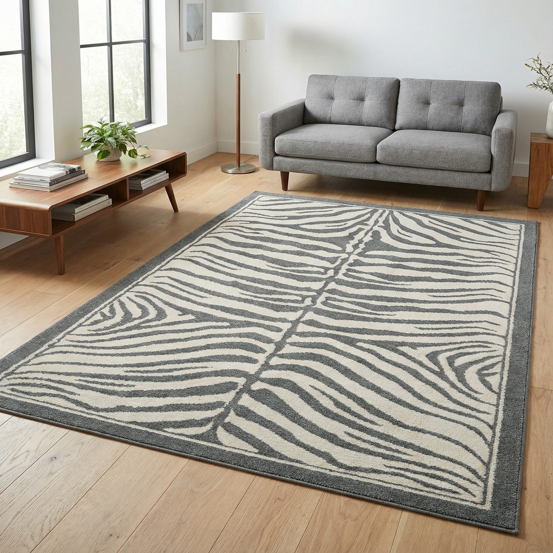 The Savannah Collection offers a 5x8 area rug that boasts a dynamic zebra stripe pattern, rendering a bold design statement in any room. Its captivating pattern incorporates ash gray and ivory tones, providing a versatile color palette that harmonizes with a variety of interior themes. Machine woven of 100% polypropylene, the rug promises durability and ease of maintenance.