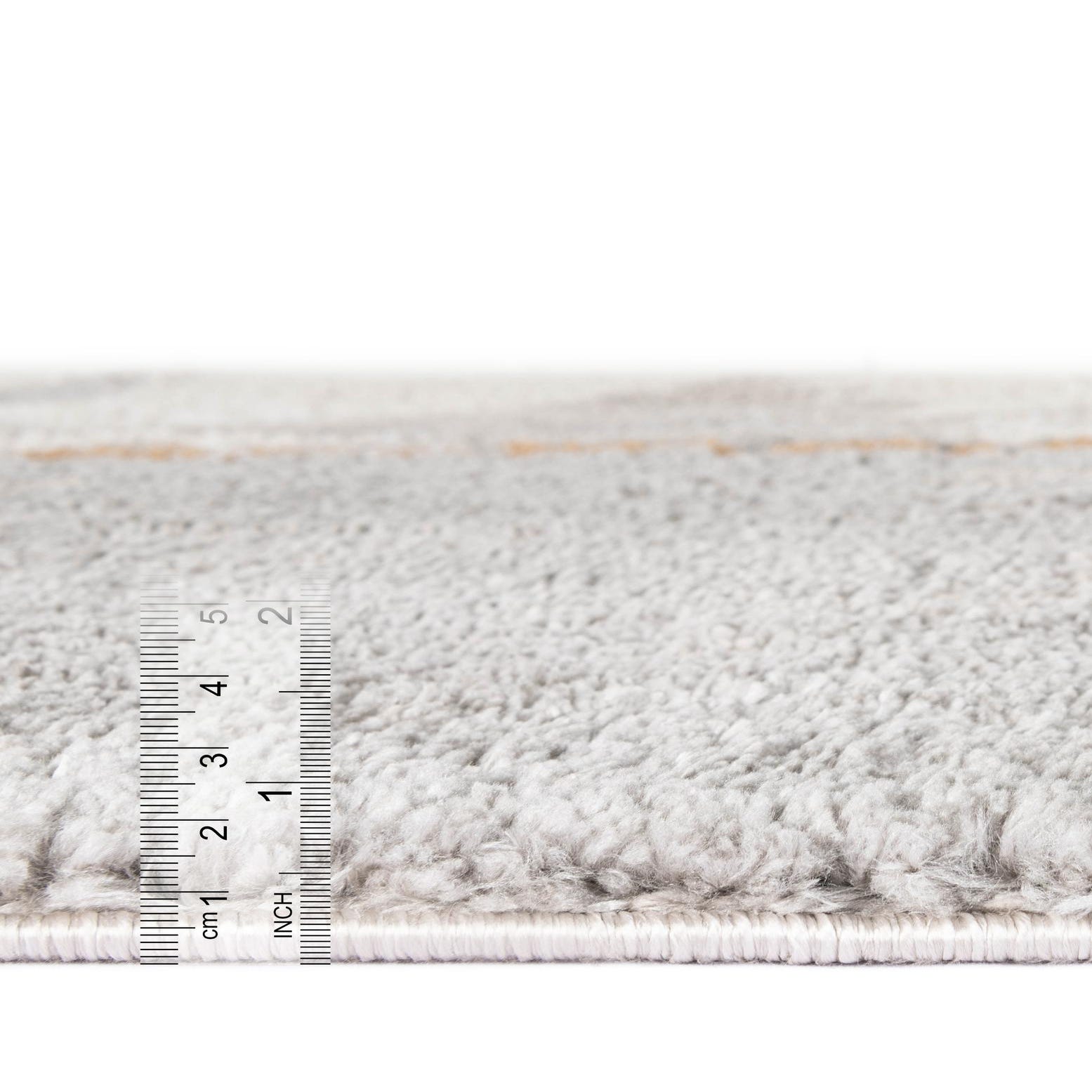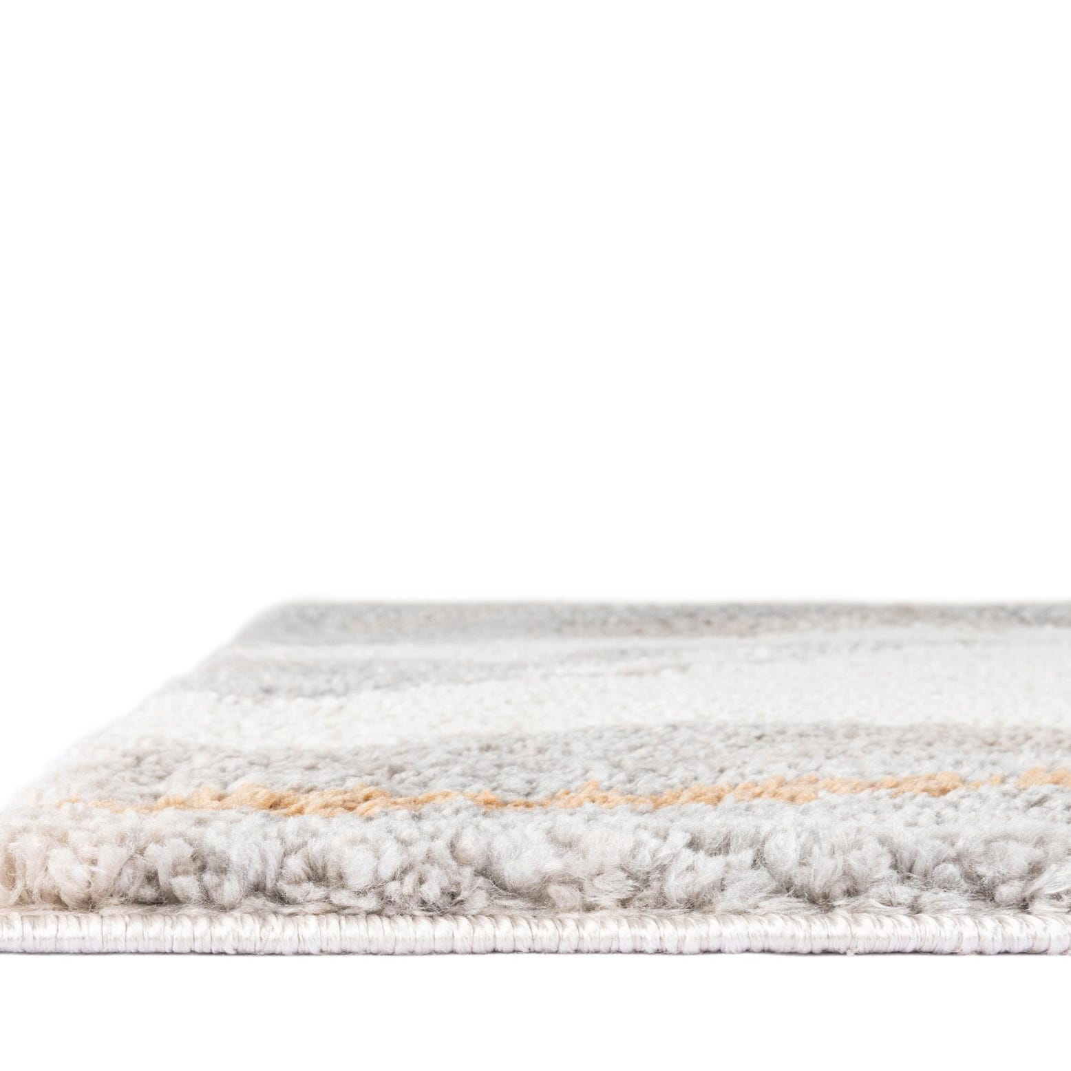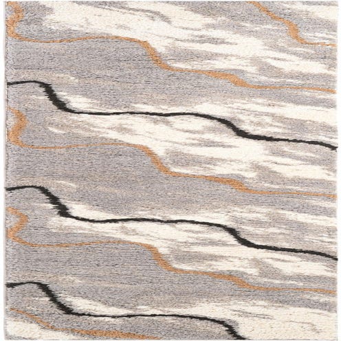 Primary color is Gray and Ivory. Colors in this rug include: Gray and Ivory, Black, Light Brown.