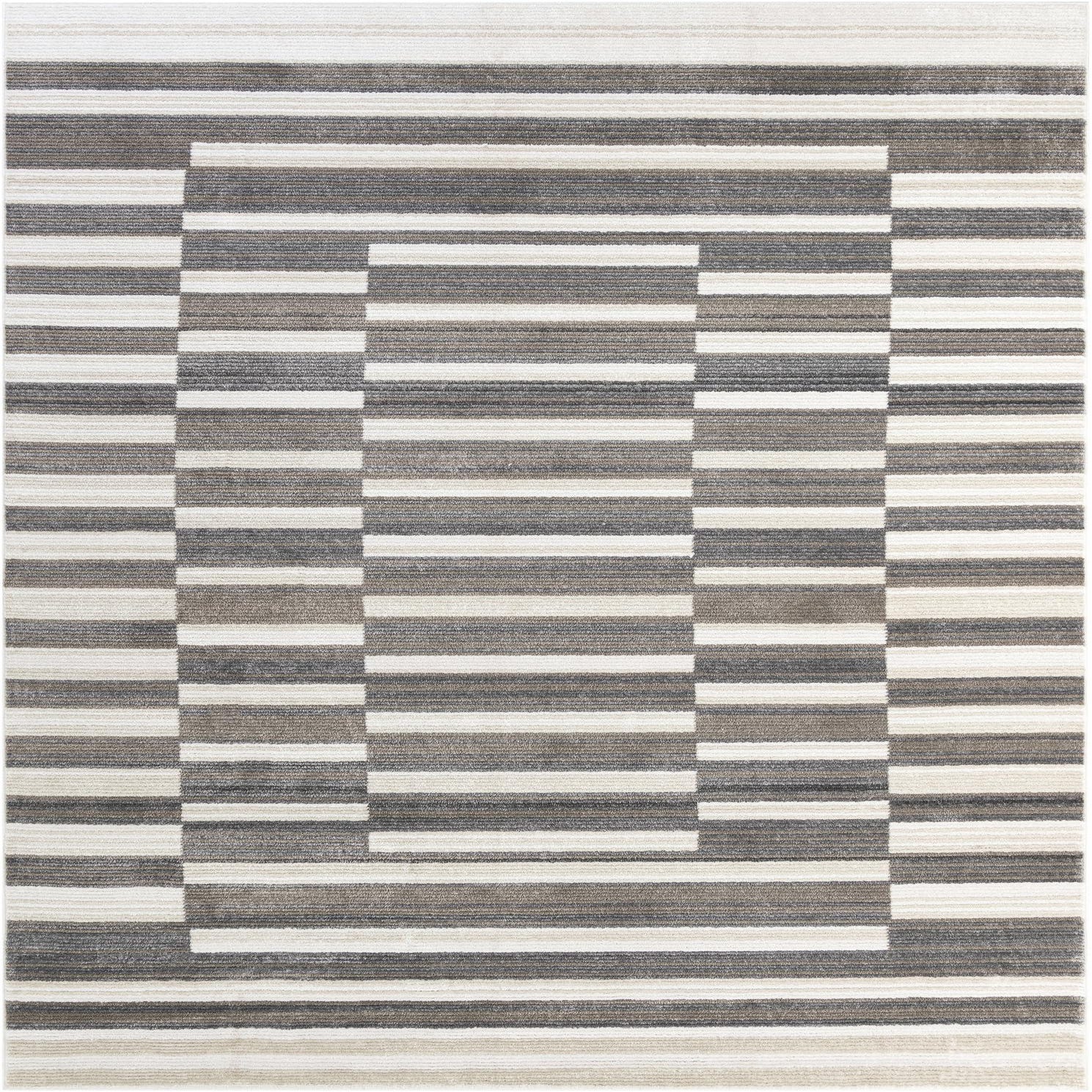 A 9x12 rectangular Odyssey rug featuring a modern striped pattern in shades of ivory, cream, and gray.
