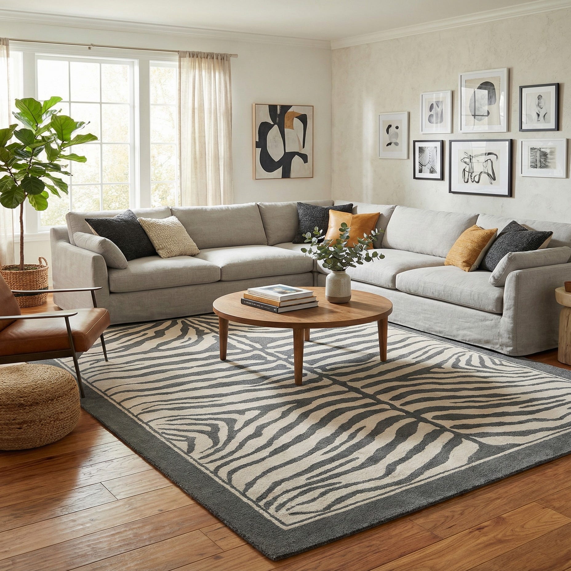 This piece is particularly suited for contemporary and transitional interiors, where its striking pattern can serve as a focal point or complement other bold design elements. The rug's stain-resistant quality and shed-free nature make it a practical choice for high-traffic areas such as living rooms, dining spaces, or home offices. The combination of its animal-inspired motif and a neutral palette allows for versatility in various decor scenarios, from minimalist to more eclectic spaces.