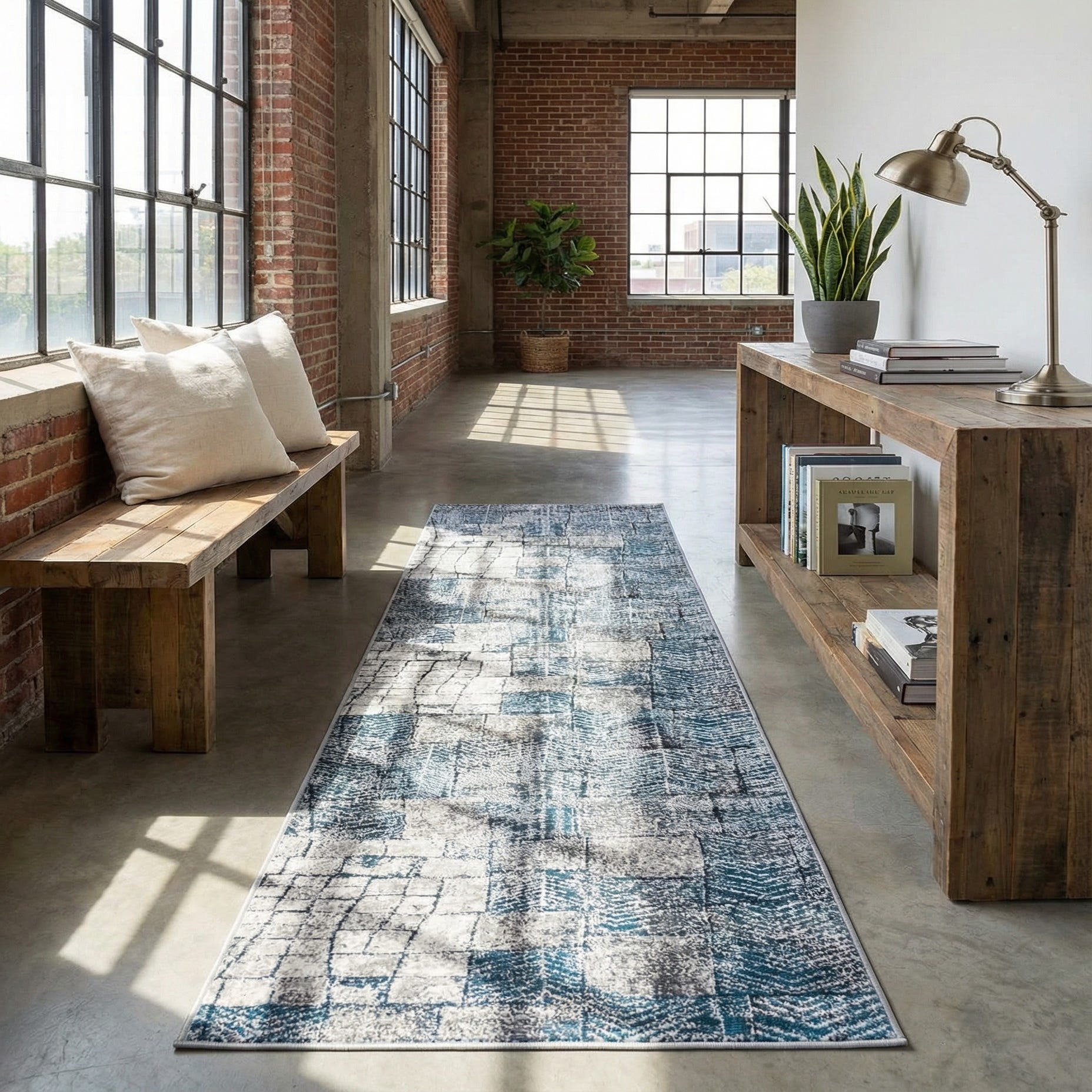 This runner fits narrow, active spaces where style and practicality both matter — think entry halls, kitchen aisles, or a corridor between rooms. It pairs well with light or weathered wood floors, matte black hardware or industrial metal accents, and a neutral sofa or bench to let the pattern anchor the space. Use it to add color and pattern to modern, transitional, or coastal-inspired interiors.