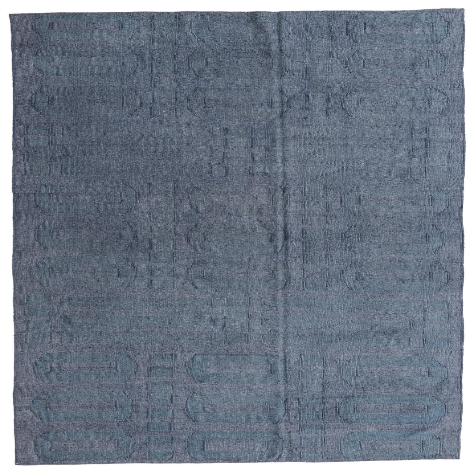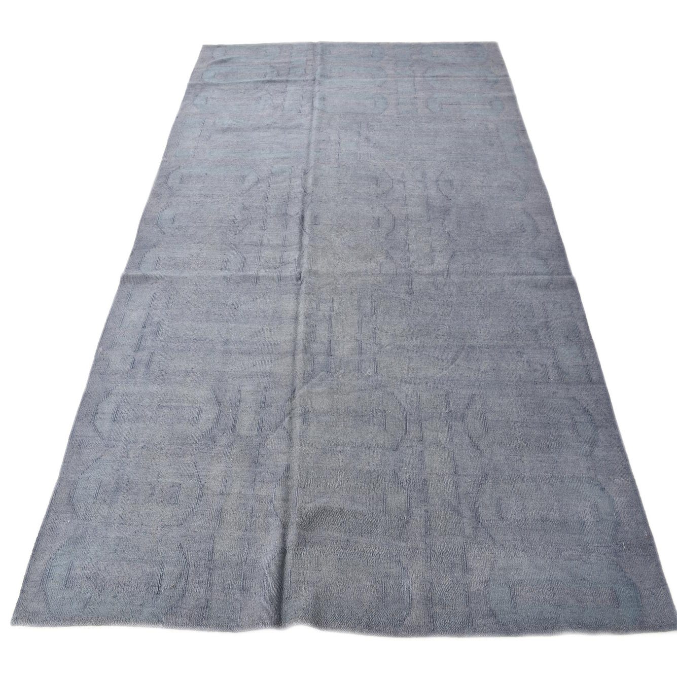 A 6x9 rectangular Kilim Modern wool rug in shades of blue and gray, featuring a subtle abstract tribal pattern.