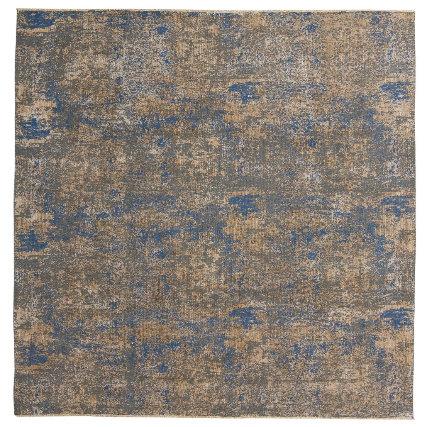 The Ultra Vintage Collection presents a hand-knotted 100% wool rug, sized at 8x11, featuring a Gray Blue background intermingled with splashes of Beige and Ivory. The rug exhibits a pattern that suggests a distressed and time-worn aesthetic. Its weathered appearance adds a sense of history and character to the piece. The texture, inherent to its woolen construction, offers a dense, soft pile that is inviting underfoot.