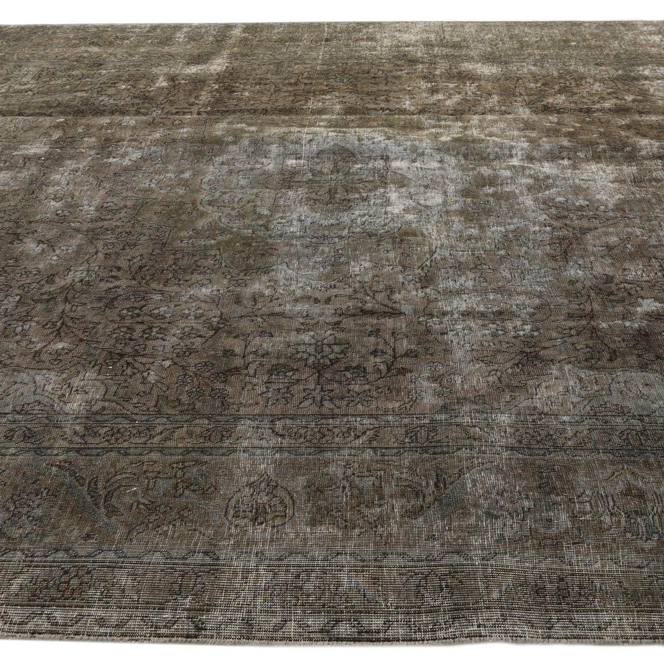 This Persian Ultra Vintage rug is an antique Persian Rug that has been washed, over-dyed, and then shaved down to a low pile. Look at the detail pictures to fully appreciate the uniqueness of this piece.