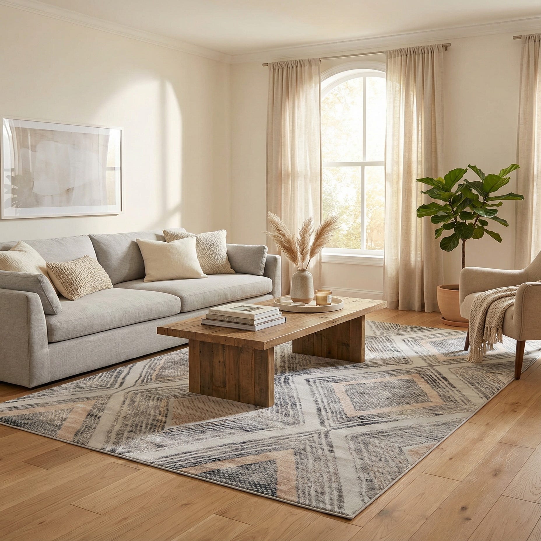 This rug works well as an anchor in a living room beneath a coffee table, in a bedroom to frame the bed, or in a home office to add quiet pattern without overwhelming the space. Its neutral Gray Cream and ivory palette pairs naturally with light wood tones, metal or matte black accents, and upholstered pieces in warm neutrals or cool grays, making it a good fit for modern, transitional, or Scandinavian-inspired interiors.