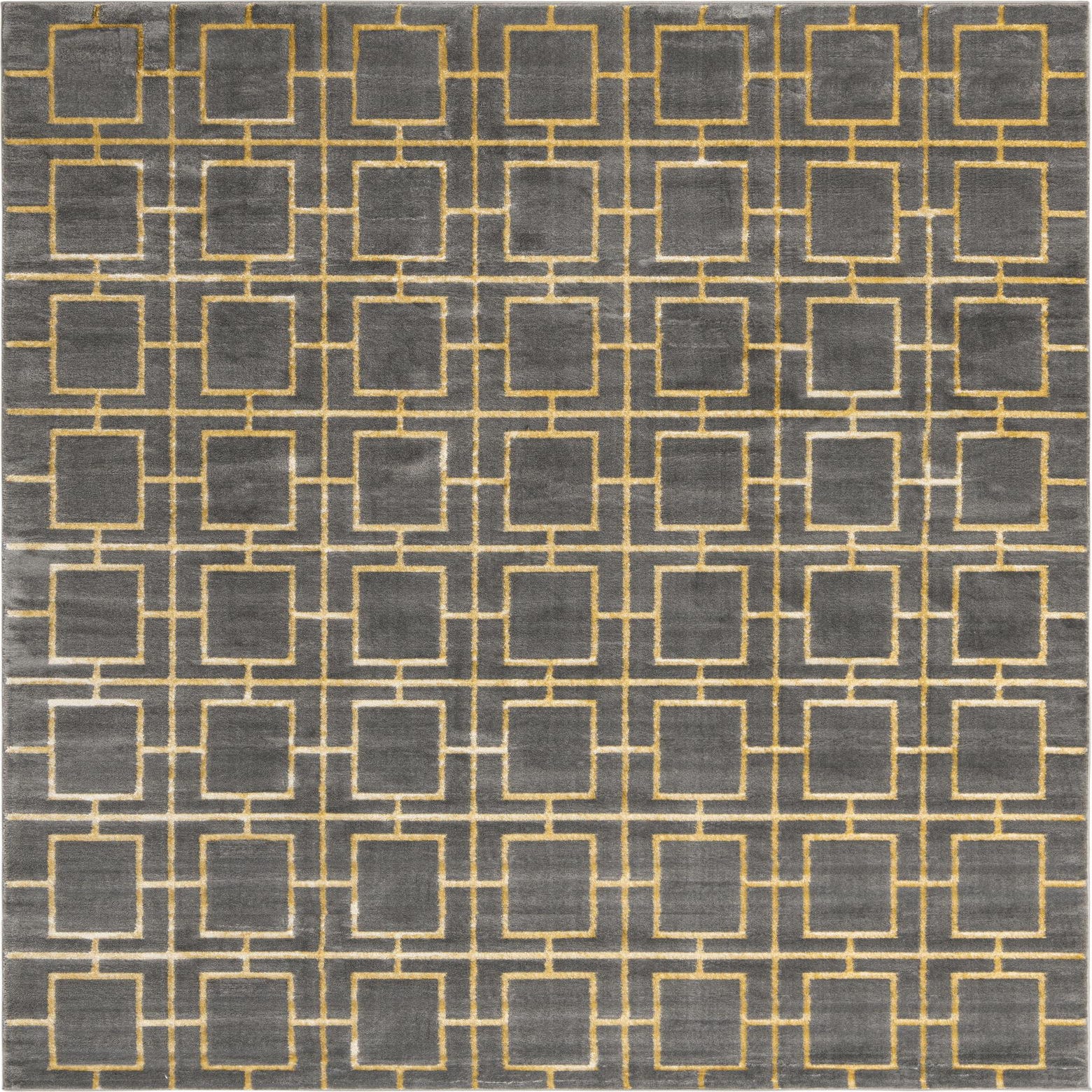 A 10x13 rectangular gray area rug with a modern gold trellis pattern, suitable for a living room.