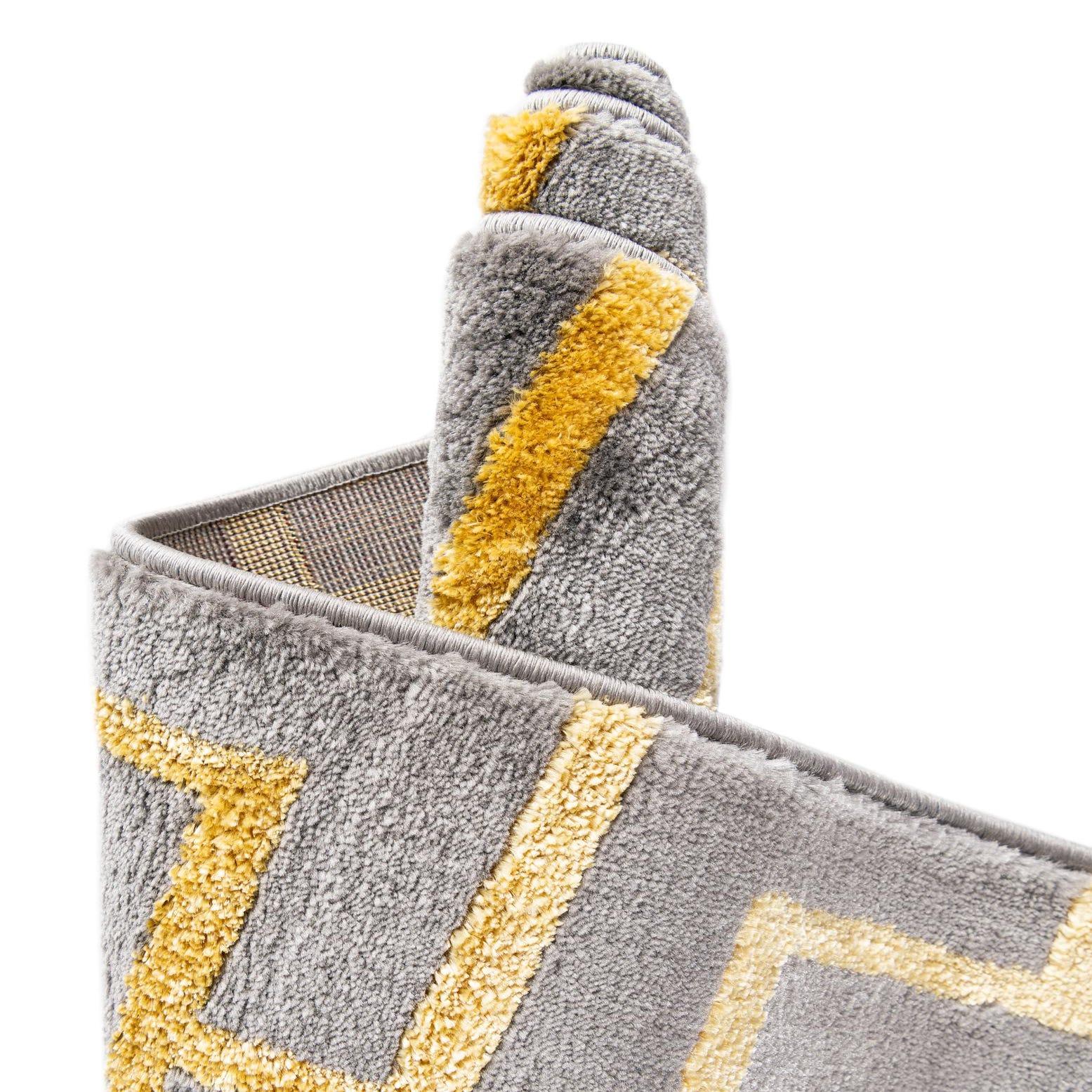 The colors incorporated into this rug allow it to serve as a versatile piece for various decor styles. Its Gray Gold background with Gold accents can seamlessly integrate into neutral color schemes or stand out among more vibrant furnishings. The clean lines and geometric pattern make it an ideal choice for contemporary, minimalist, or glam interior designs.
