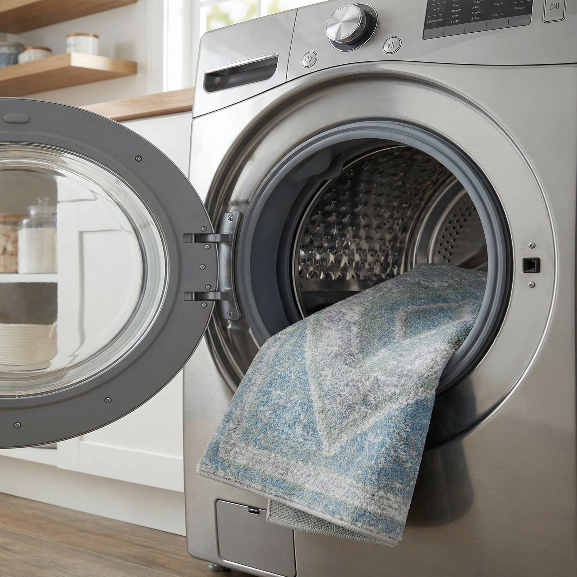 This rug's machine washable quality complements its shed-free nature, making it ideal for high-traffic areas and homes with pets or children. The neutrality of the hues and the simplicity of the design allow it to integrate seamlessly into various decor styles, from modern minimalist spaces to more traditional settings. The Kamala Washable rug is well-suited for placement in areas such as entryways, kitchens, or bathrooms, where easy cleaning is paramount. The gentle colors blend well with natural wood tones, metallic finishes, and a range of other material textures, allowing for a harmonious composition in any interior design scheme.