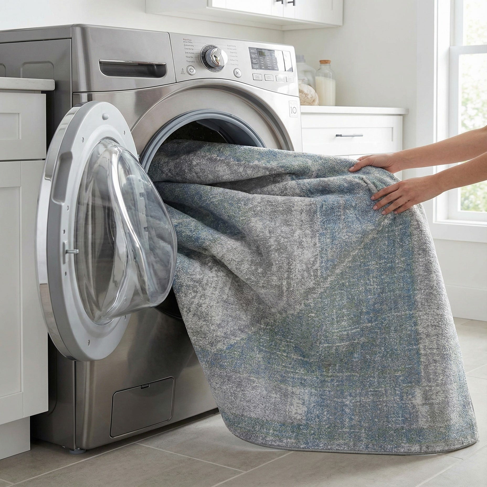 The low pile of the rug offers an easy-to-maintain surface that is both stain-resistant and shed-free, catering to the practical needs of high-traffic areas and pet-friendly households. Its machine washable quality renders effortless care, while the textured finish provides visual depth and tactile interest.