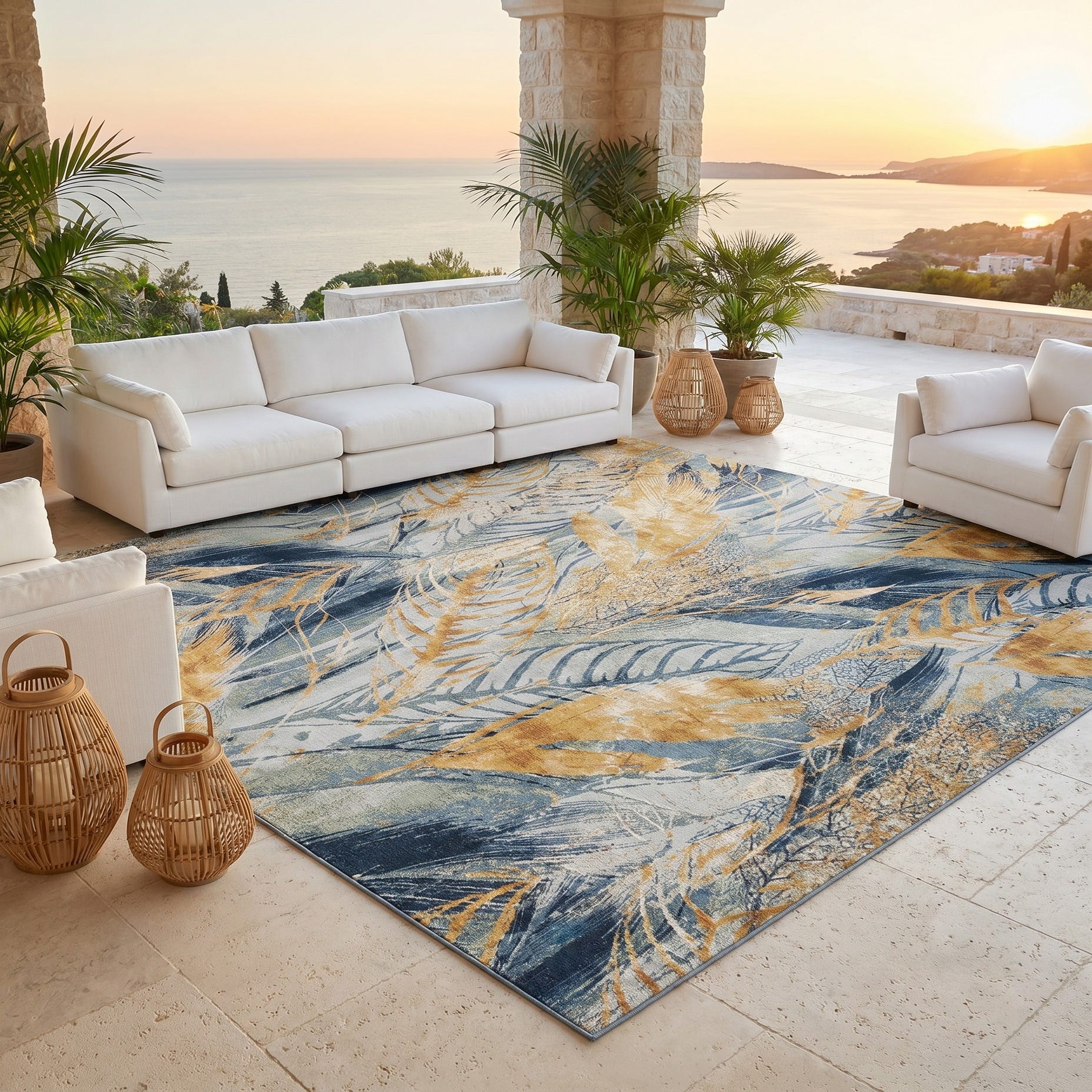 10' x 10' Easy-Clean Botanical Indoor / Outdoor Square Rug