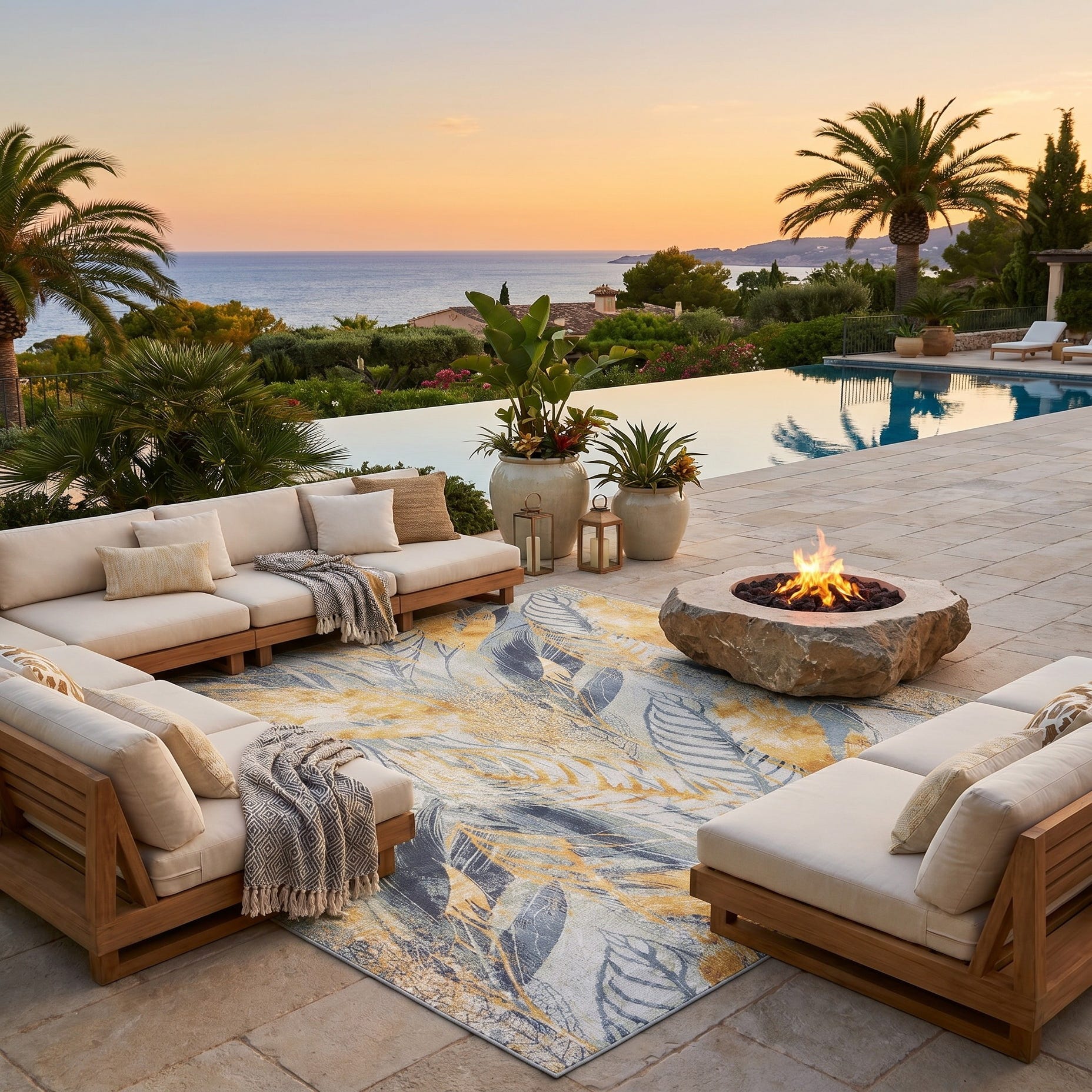 • Weathered teak outdoor lounge set