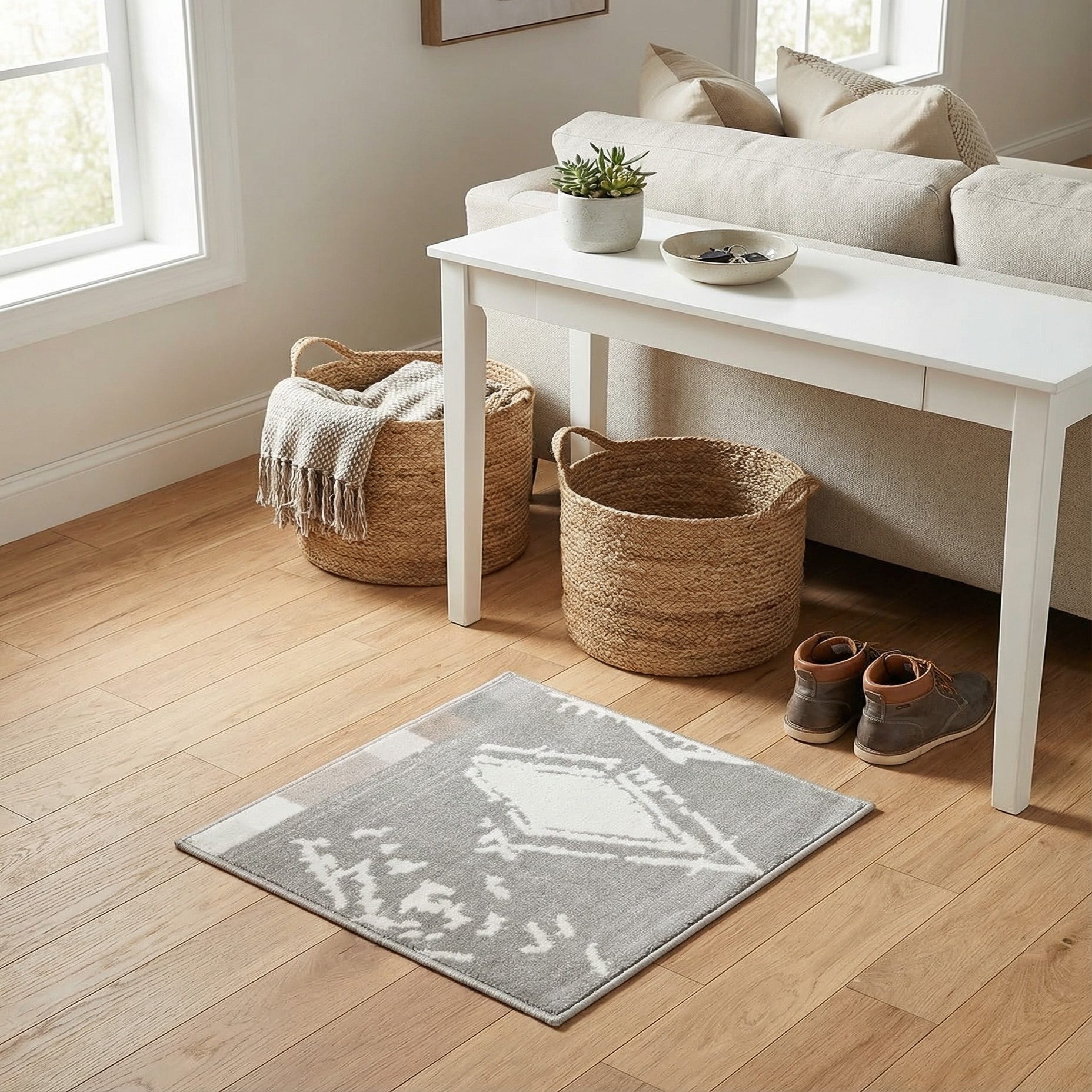 Machine made from 70% polypropylene and 30% polyester, this sample offers consistent construction and a comfortable hand. The neutral gray and ivory palette complements modern, transitional, Scandinavian, or minimalist schemes—use it to ground a living room seating area, add softness beneath a bedroom set, or define an entryway or home office. This piece works well layered over hardwood or tile to introduce texture and visual interest.