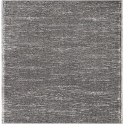A 10 ft runner rug in shades of gray and silver with a subtle, textured Hollywood Glam pattern, ideal for a hallway.