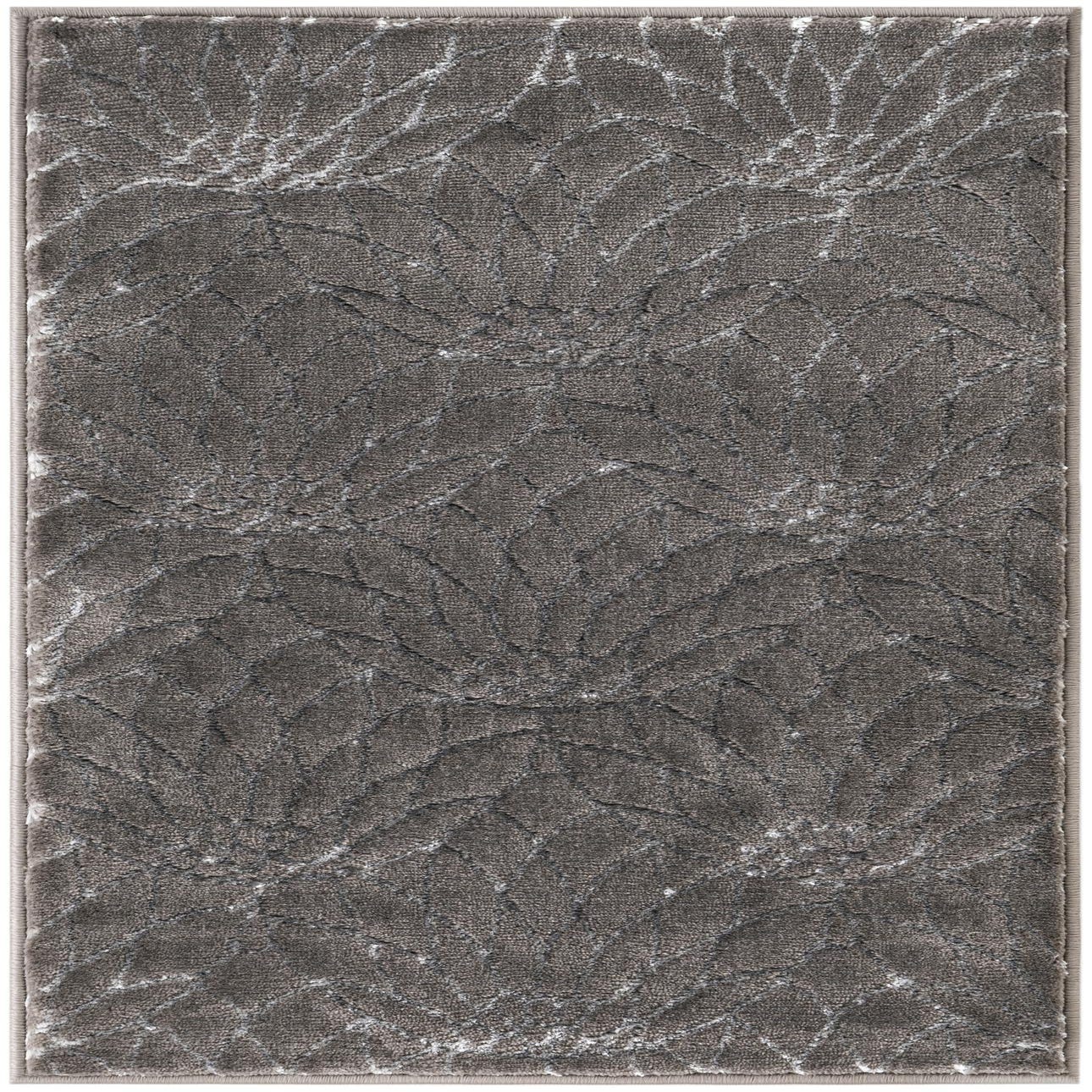 A 2x3 rectangular gray area rug with a subtle, textured floral pattern in varying shades of gray and silver, suitable for an indoor space.