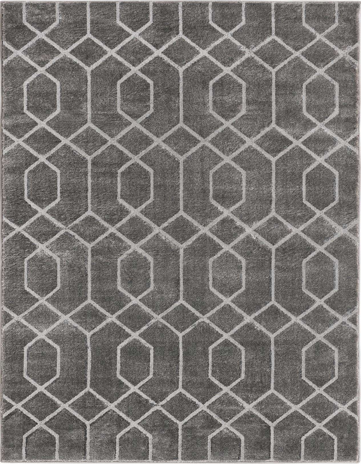 A 3x5 rectangular gray area rug with a textured pile and a light gray Hollywood Glam trellis pattern.