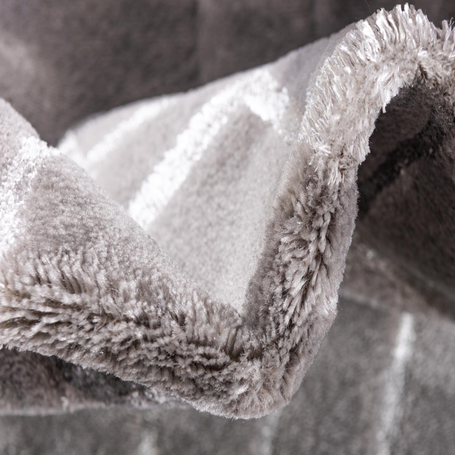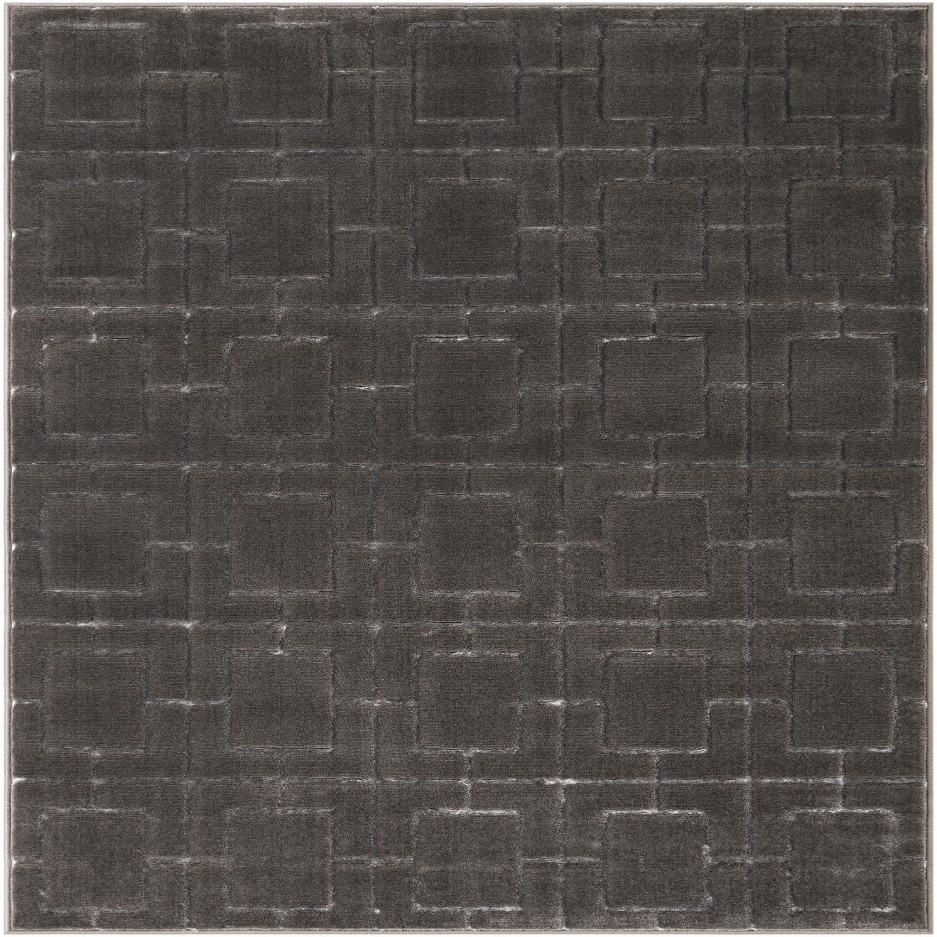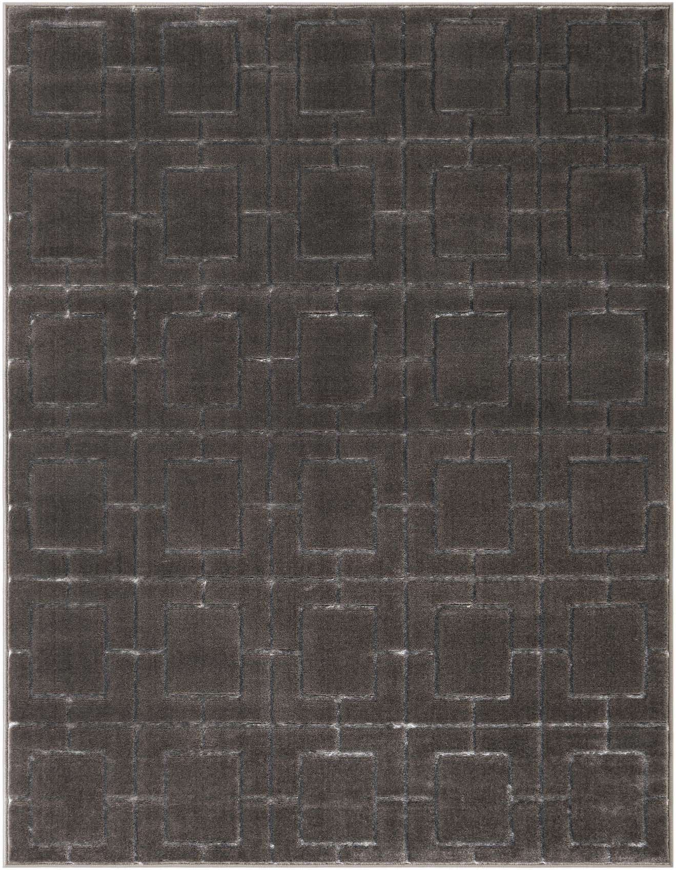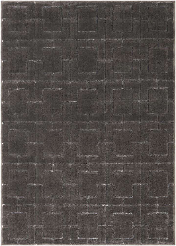 A sleek geometric trellis of interlocking squares is sculpted into a soft gray-silver field, creating a subtle play of light and shadow across the surface. The background in Gray Silver provides a cool, neutral base while the Silver highlights catch the eye with a gentle sheen; the low, dense pile has a plush hand and the cut-and-loop sculpting adds a tactile, dimensional feel you can notice underfoot. Clean lines and a restrained metallic hint give the rug a modern-glam sensibility that pairs well with both contemporary and transitional interiors.