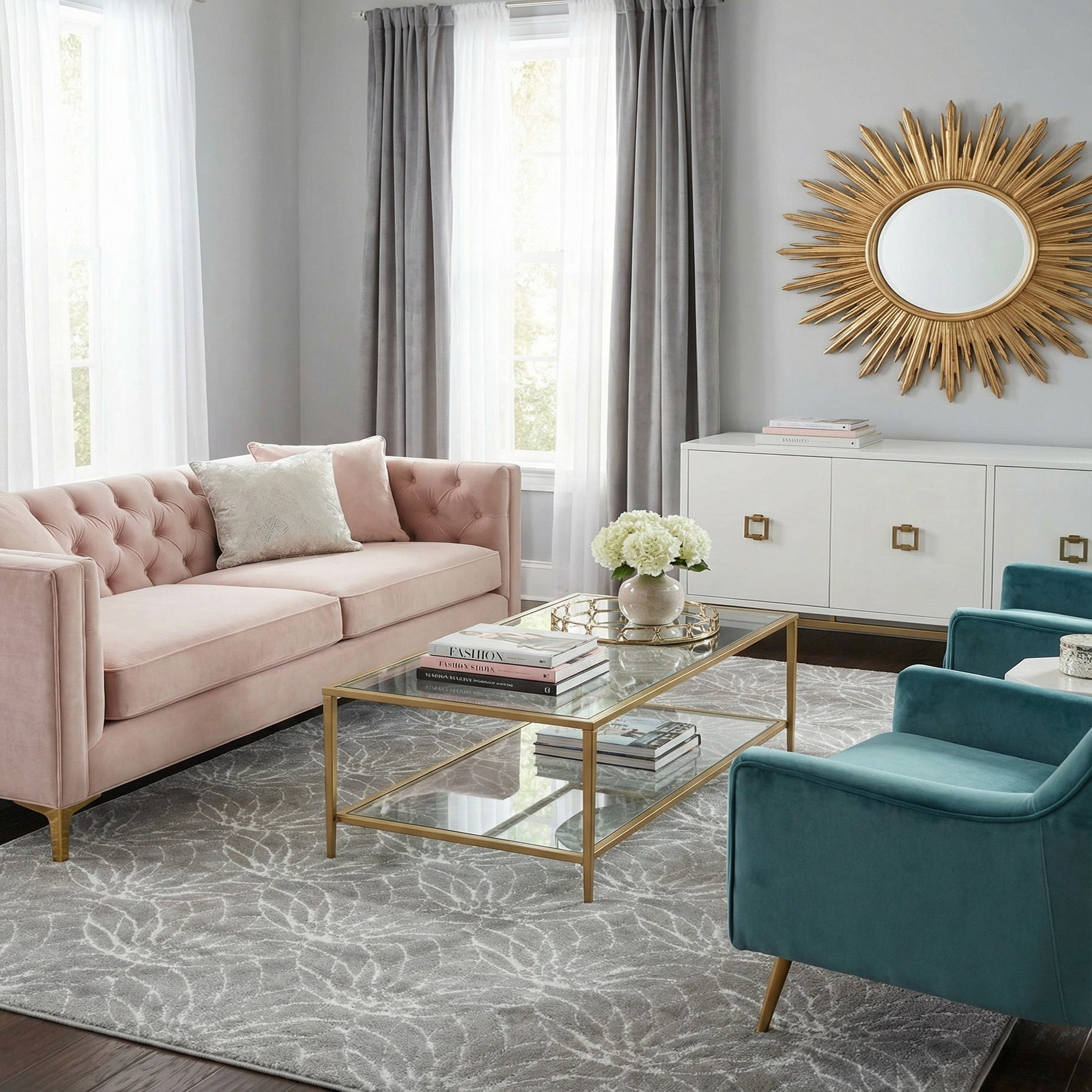 This palette and pattern work well with contemporary and transitional interiors—pair it with cool-toned upholstery, chrome or glass accents, and soft metallic finishes for a refined, modern look. It also complements minimalist schemes that need a visual anchor or a bedroom where neutral layers and plush bedding create a serene retreat. Use it to define a seating area, add quiet pattern to an entry or home office, or place it beneath a small dining or vanity grouping for subtle shimmer and cohesion.