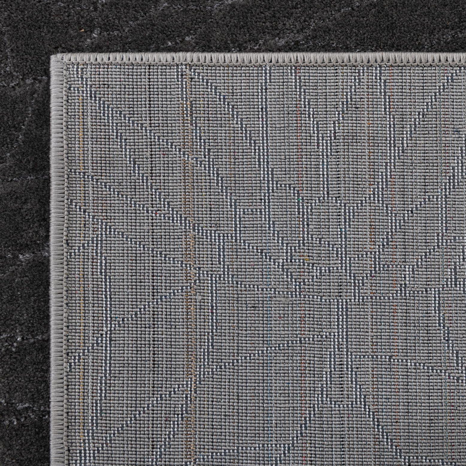 A repeating trellis of fan-like floral motifs is worked in Silver against a Gray Silver background, creating a calm, rhythmic pattern with a subtle Art Deco influence. Machine made from 70% polypropylene and 30% polyester, the rug has a low-to-medium pile that feels smooth underfoot; the polyester fibers lend a gentle sheen to the raised motif while the polypropylene base provides structure and durability. Running your hand across the surface reveals a soft, velvety touch with just enough texture to define the pattern without overwhelming a room.