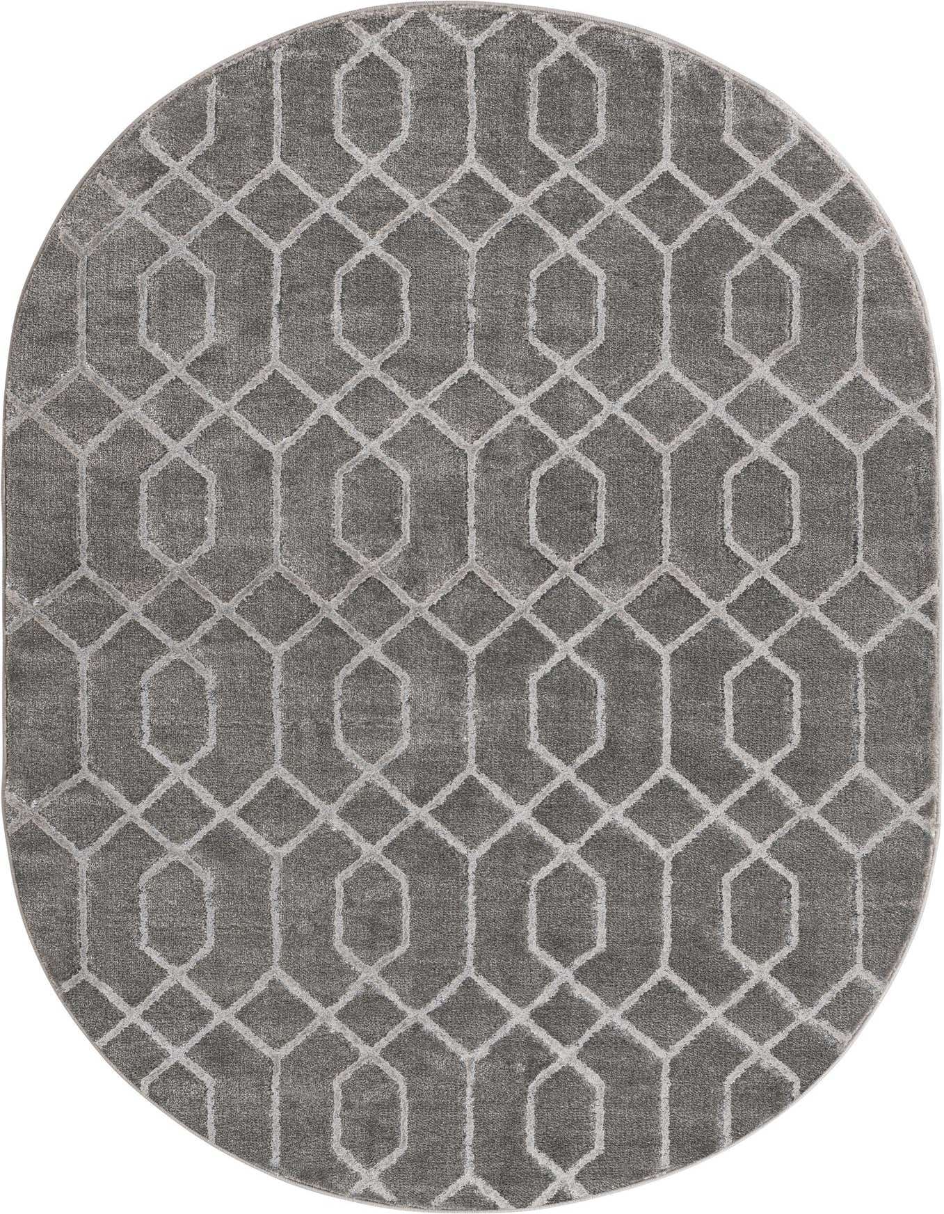 A 4'x6' oval gray area rug with a textured Hollywood Glam trellis pattern, perfect for an indoor living space.