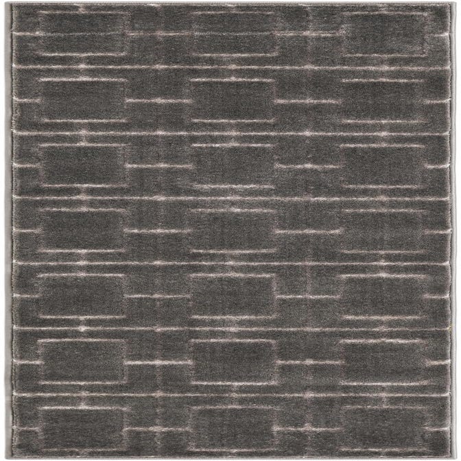 A modern trellis of softened rectangles sits against a Gray Silver background, with Silver-toned highlights tracing the geometric grid. The pattern is understated rather than busy — linear, slightly blurred edges give the motif a lived-in, tactile quality. The pile catches light subtly, creating a gentle sheen that brings out the contrast between the matte ground and the brighter silver accents.