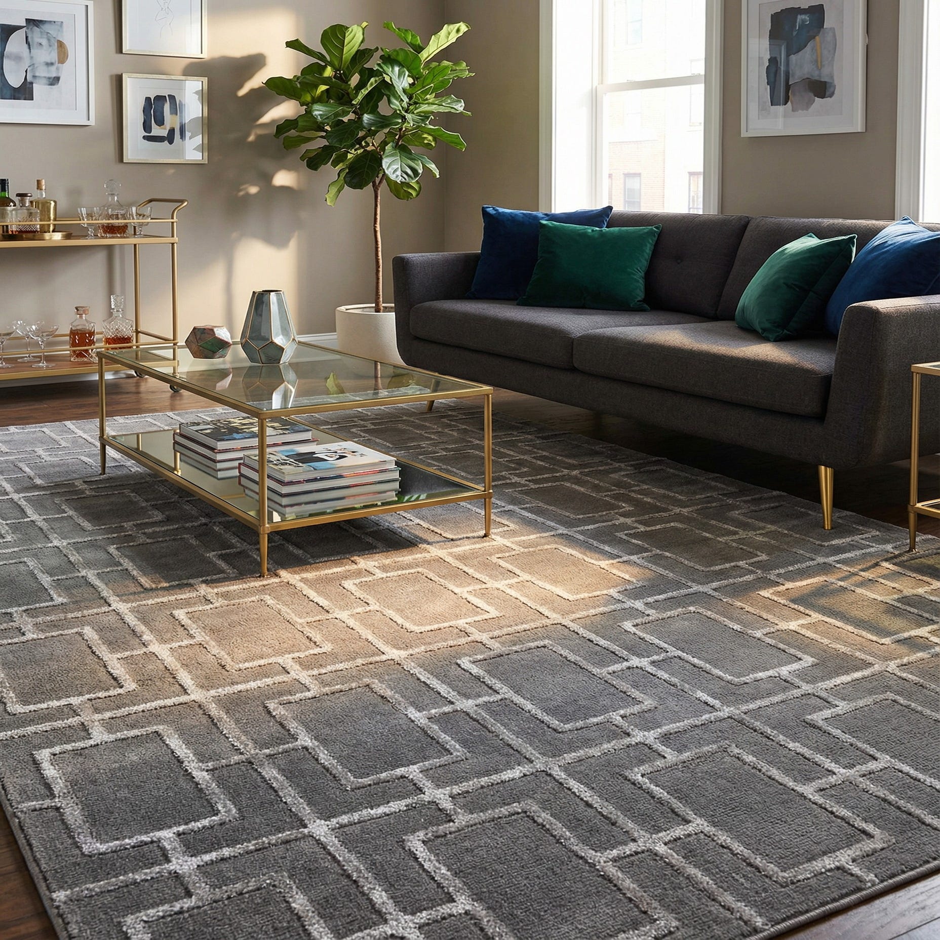 This rug works well where a calm, contemporary look is wanted—place it to anchor a living room seating area, beneath a glass-top dining table, or layered at the foot of a bed to add quiet sophistication. It pairs naturally with cool neutrals, chrome or nickel metal finishes, and minimalist furnishings, and also complements softer glam touches like mirrored furniture or plush throw pillows.
