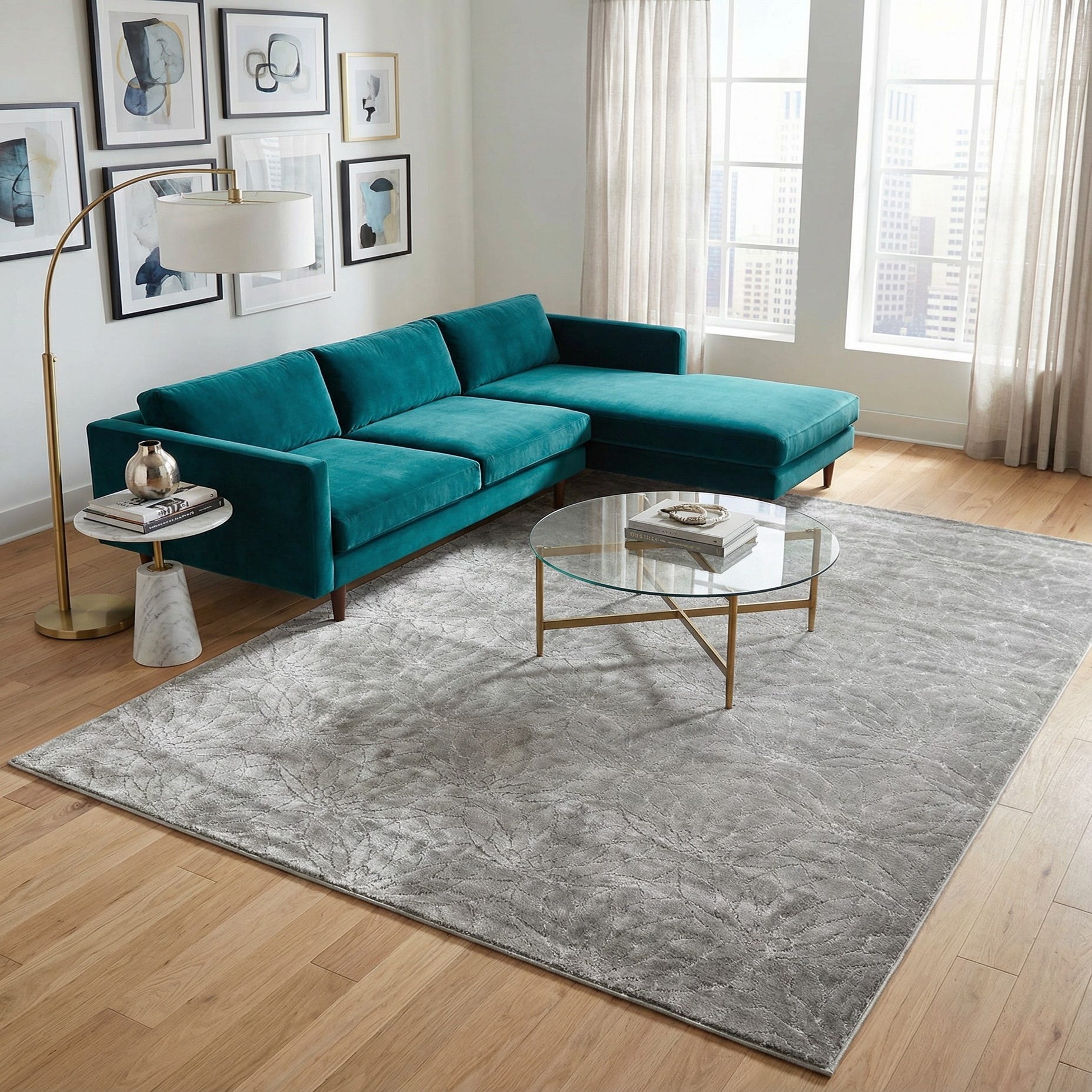 Machine-made of 70% polypropylene and 30% polyester, the pile has a plush, velvety hand with a soft low profile that feels comfortable underfoot. Place this rug to anchor a living room seating area, beneath a bed to add quiet glamour to a bedroom, or in a formal sitting room paired with mirrored or chrome accents. It pairs well with neutral palettes, soft pastels, or jewel-tone upholstery and complements velvet fabrics and glass or metal finishes for a contemporary, polished look.