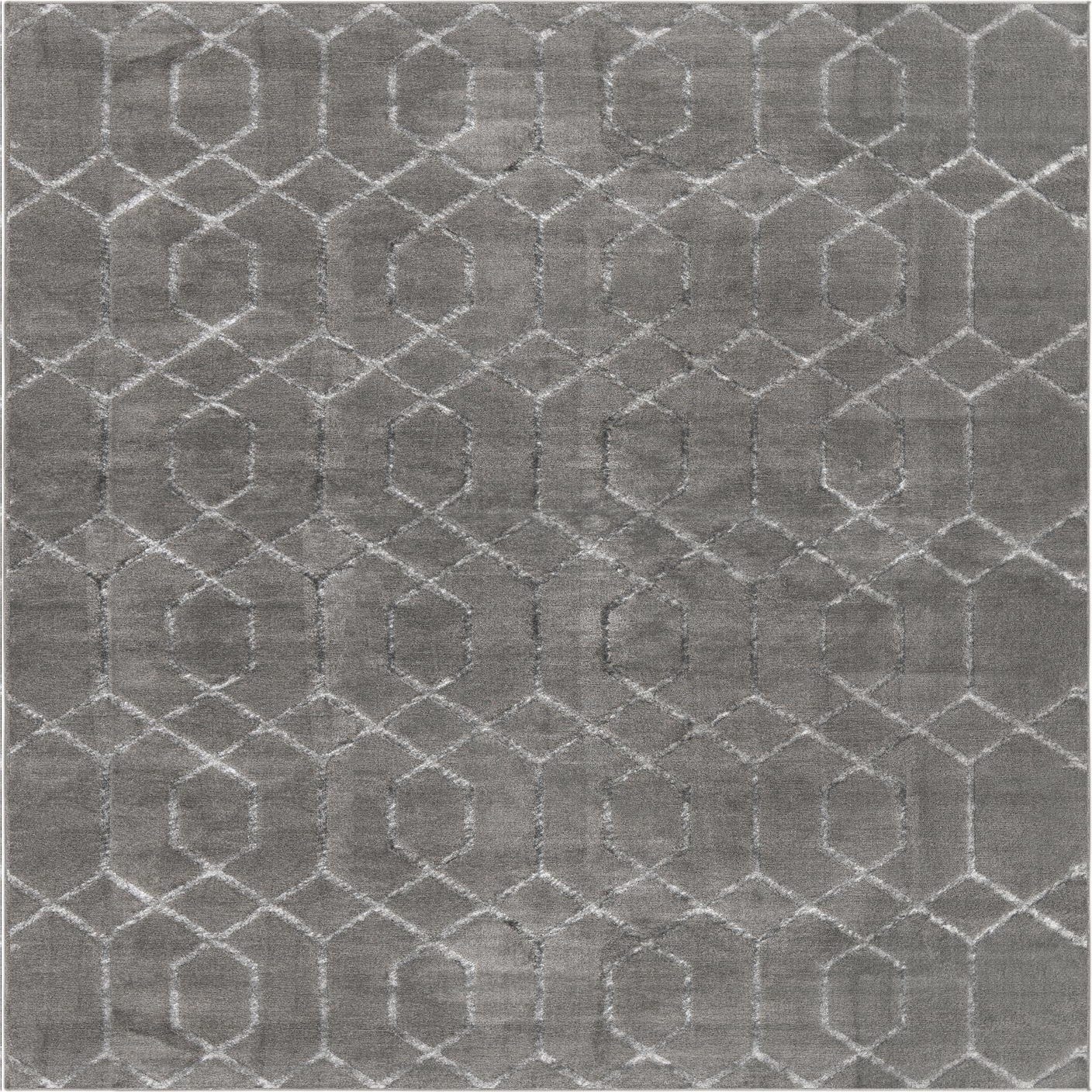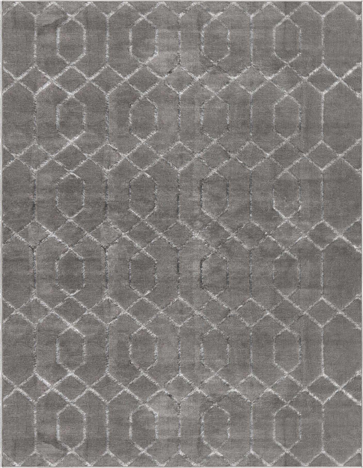 A 7x10 rectangular gray area rug with a textured Hollywood Glam trellis pattern, ideal for a living room.