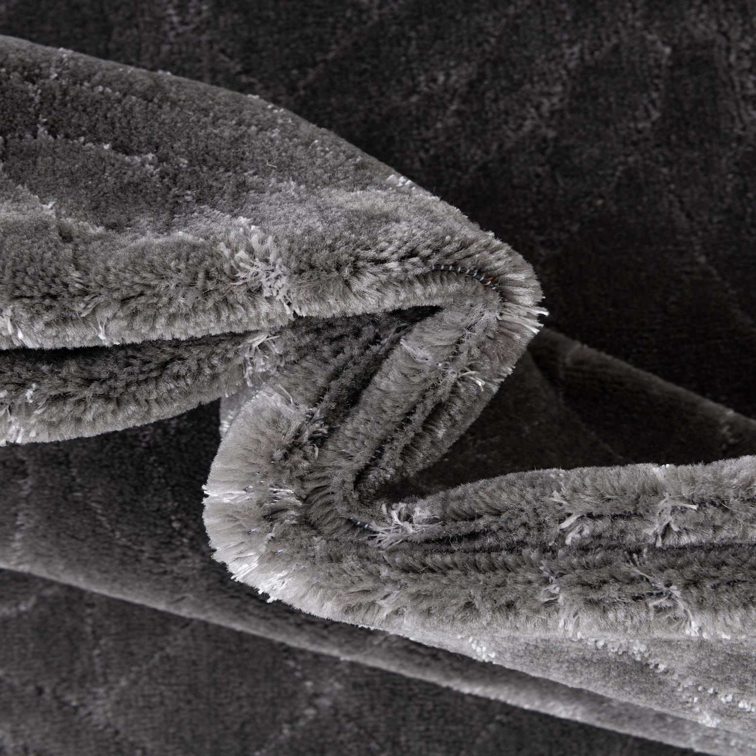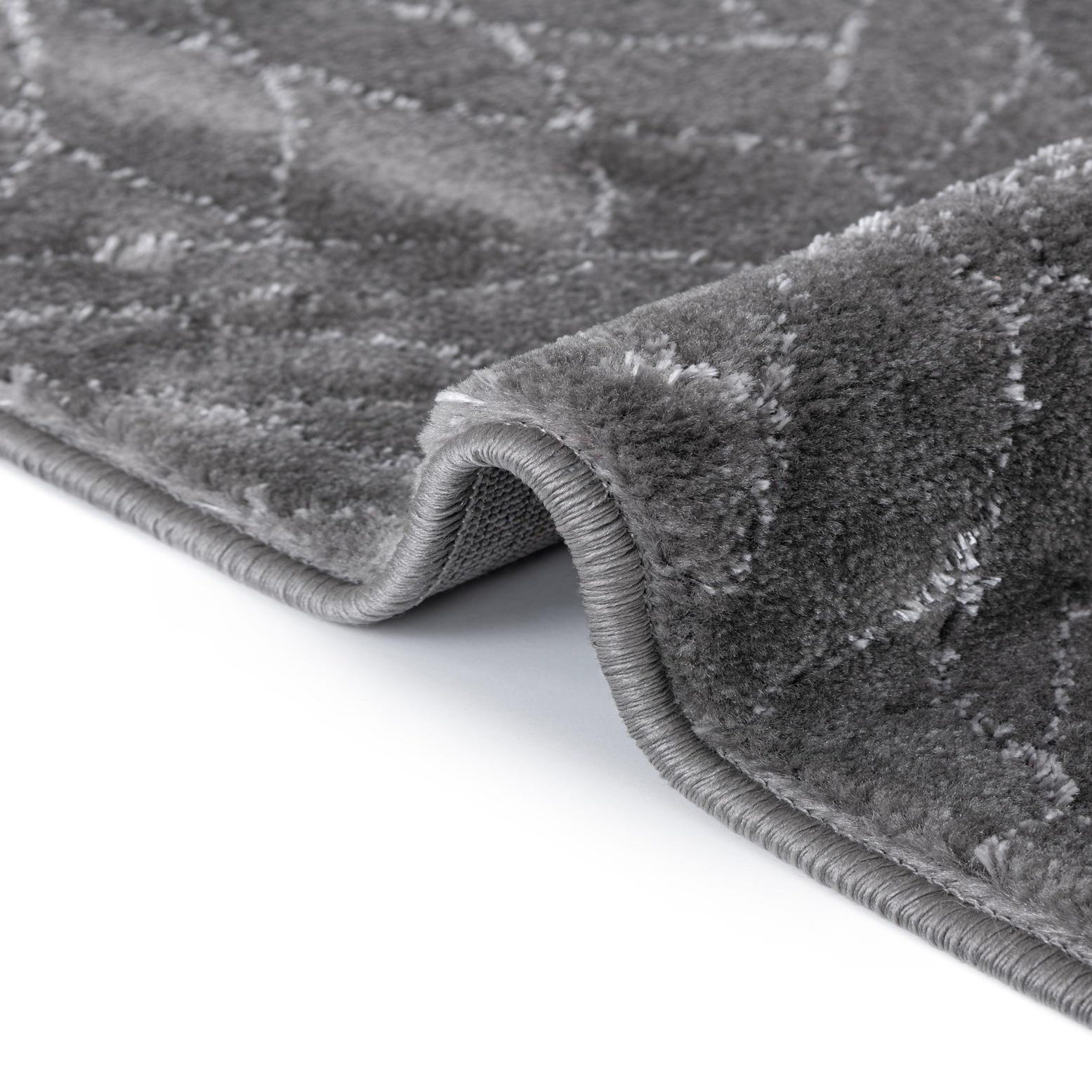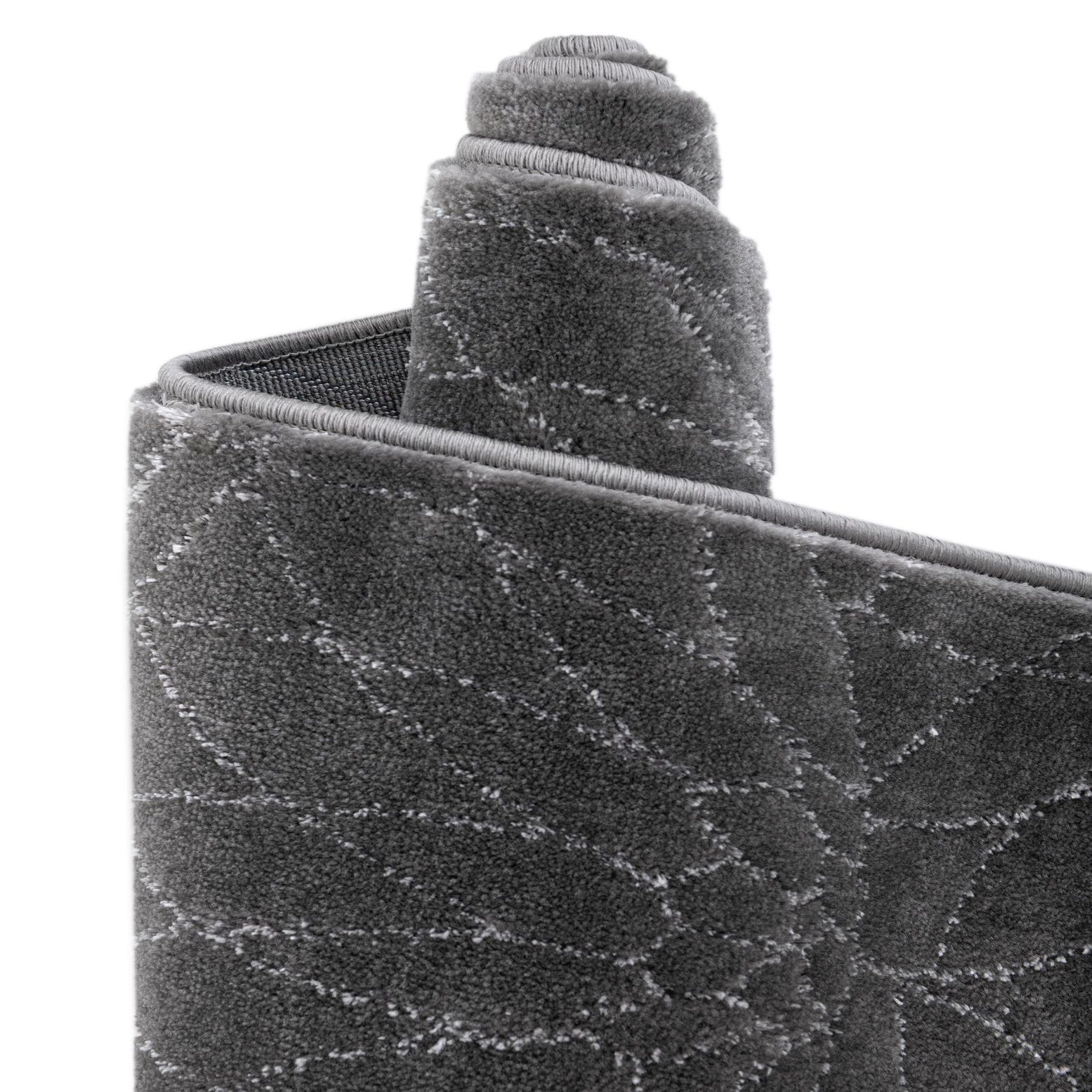 This rug pairs well with cool, contemporary interiors — think charcoal or dove-gray upholstery, chrome or mirrored accents, and streamlined furniture. It also works in transitional spaces where a touch of metallic tone helps bridge traditional shapes and modern finishes. Place it beneath a round dining table, centered in a seating area to ground a sofa and chairs, or in a bedroom to add a quiet, polished layer beneath nightstands and a bed.
