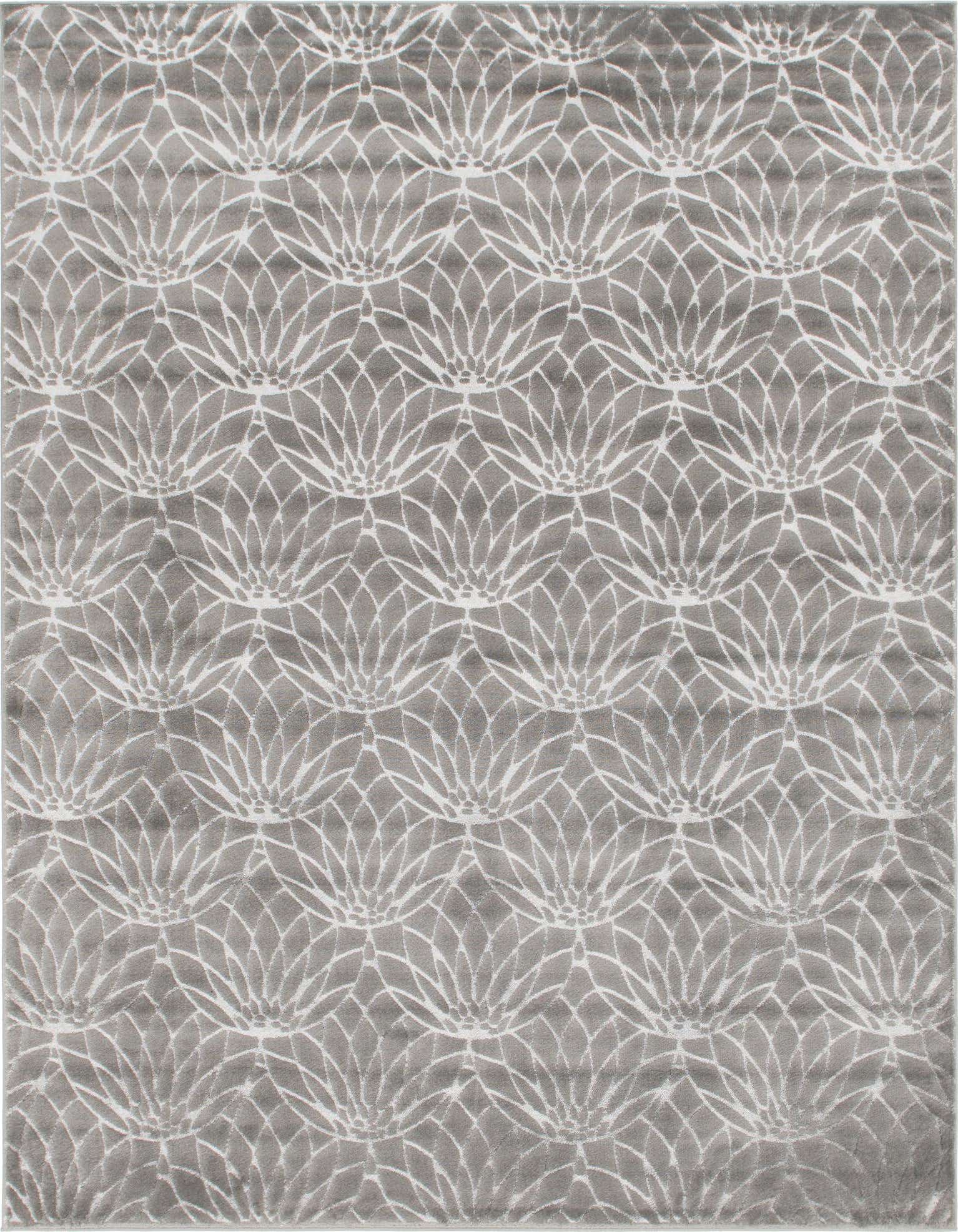A soft Gray Silver field anchors a repeating trellis-inspired floral motif in bright Silver, creating a clean, layered pattern that balances geometry with organic movement. The fan-like blooms form a rhythmic grid across the surface, giving the rug a refined, modern look that complements both contemporary and transitional schemes. The contrast between the muted background and the lighter motif adds subtle depth without overwhelming the room.