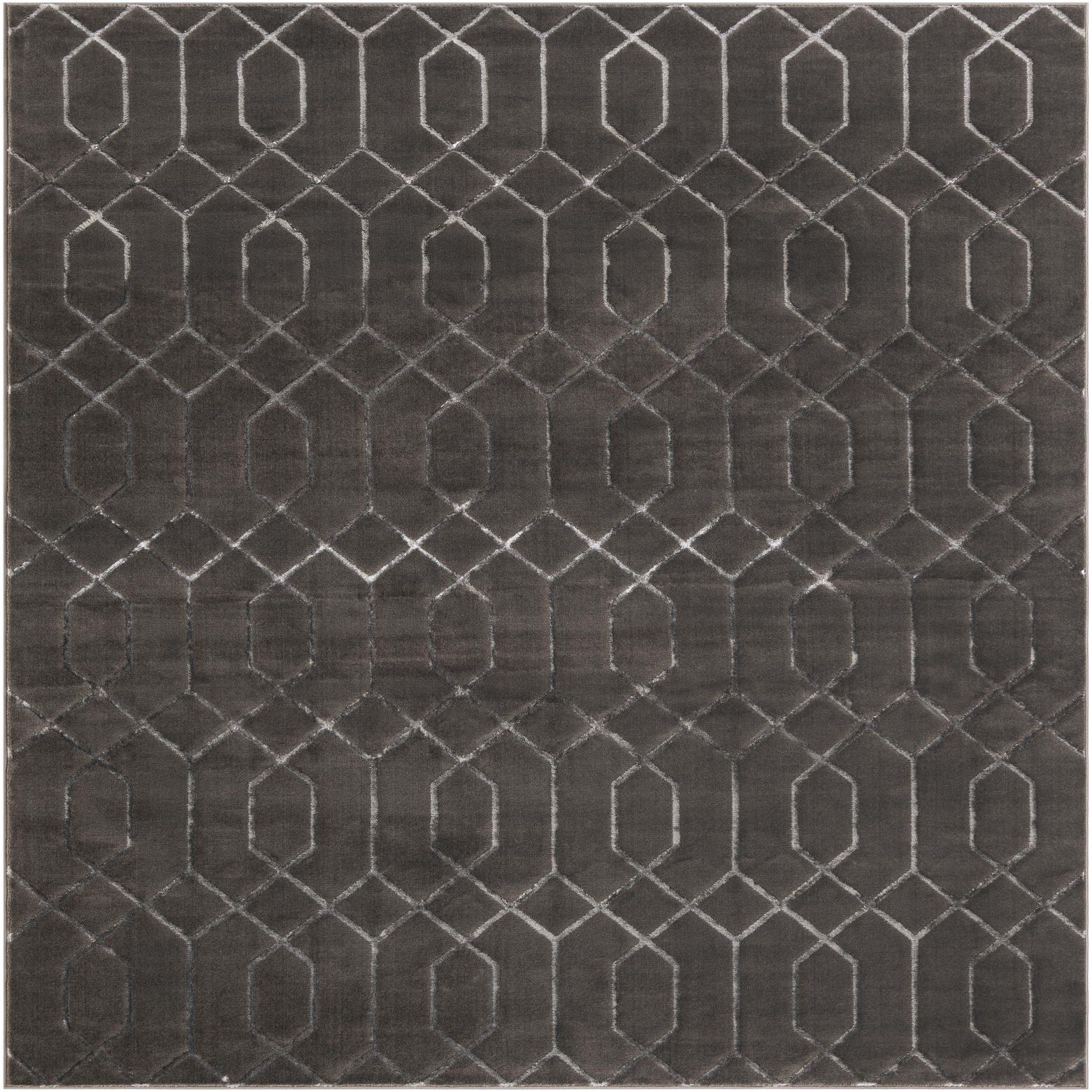 An 8x10 rectangular gray area rug with a modern Hollywood Glam trellis pattern, featuring a textured high pile.