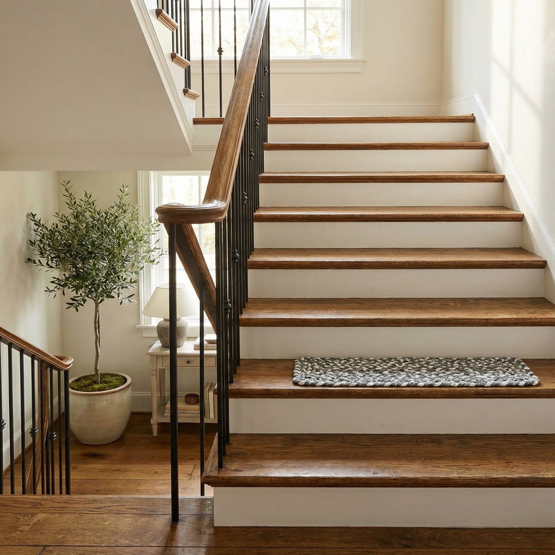 Adding these stair treads to a home can bring both visual appeal and tactile warmth to the transitional spaces of stairs, enhancing the overall experience while introducing a touch of handcrafted artistry.