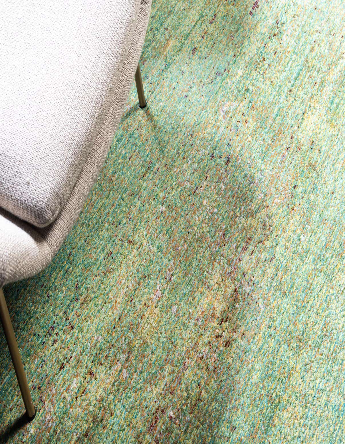 Primary color is Green. Colors in this rug include: Green, Beige, Light Blue, Olive, Orange, Red, Yellow.