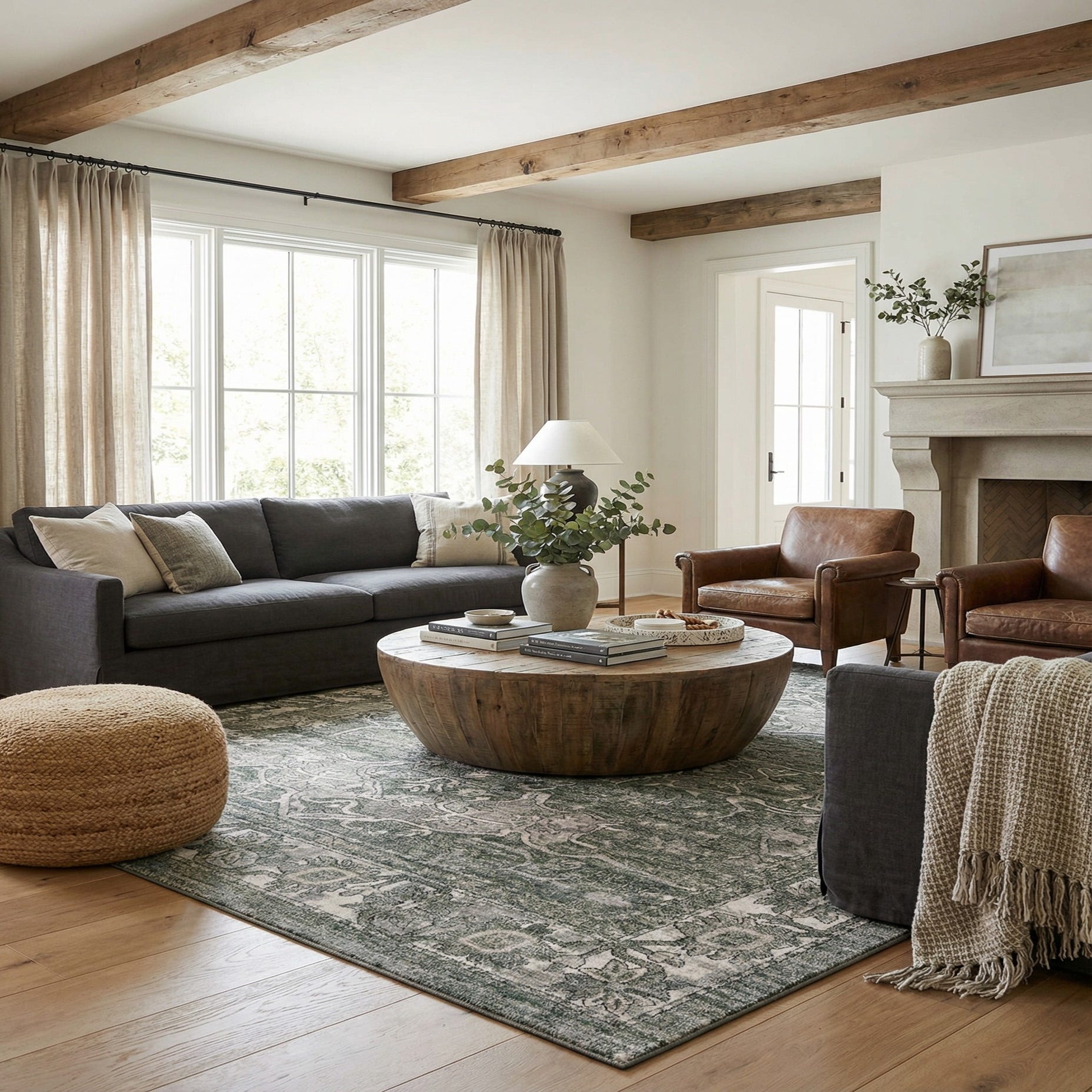 The overall effect is quietly classic with a relaxed, lived-in character that works well in a range of interiors. Place it under a seating group to anchor a living room, beneath a dining table to introduce pattern without overpowering, or use it to bring layered texture to a bedroom or home office. It pairs nicely with warm woods, painted furniture in soft neutrals or deep blues, and both traditional and transitional decor schemes.