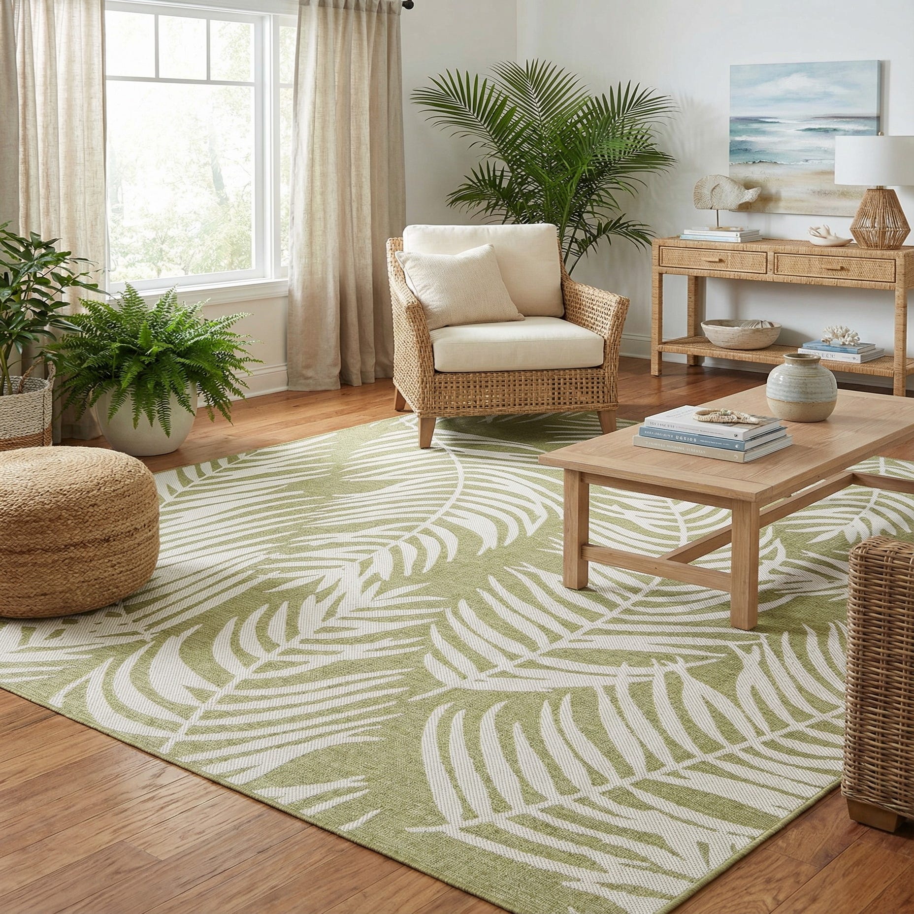 10' x 10' Washable Botanical Indoor / Outdoor Square Rug