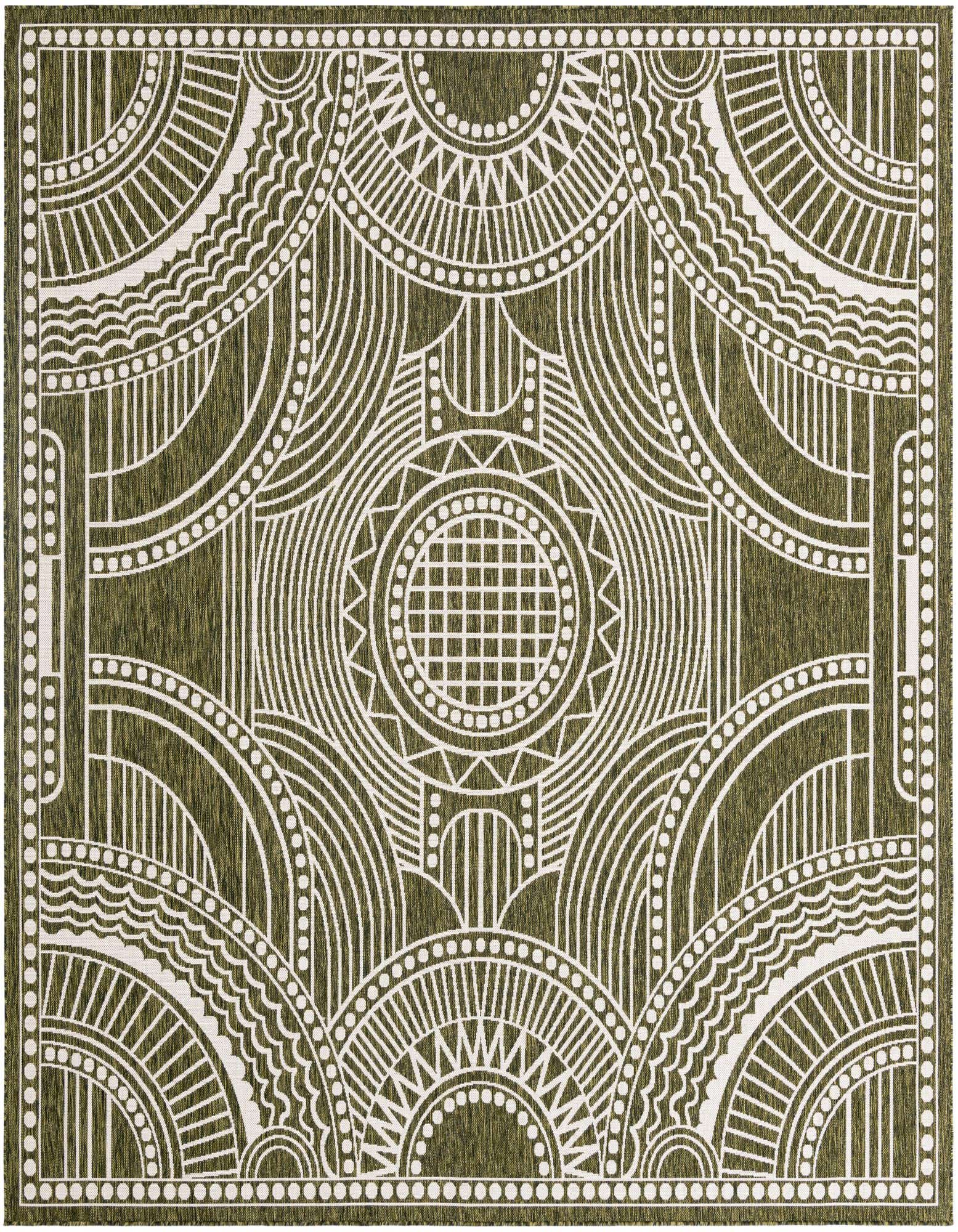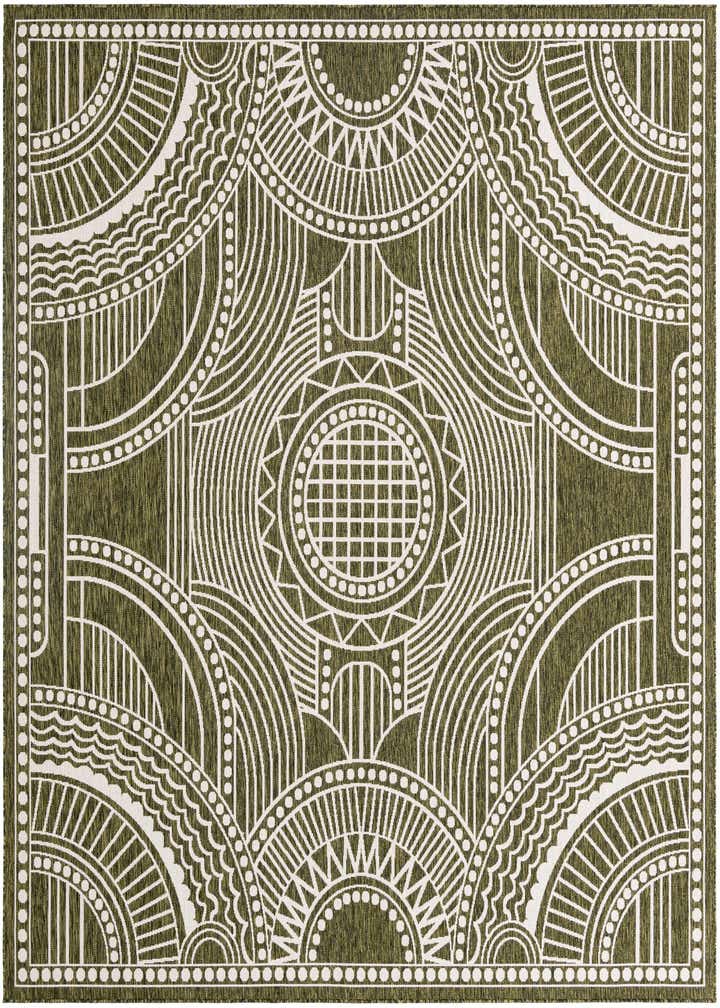 Primary color is Green. Colors in this rug include: Green, Ivory.
