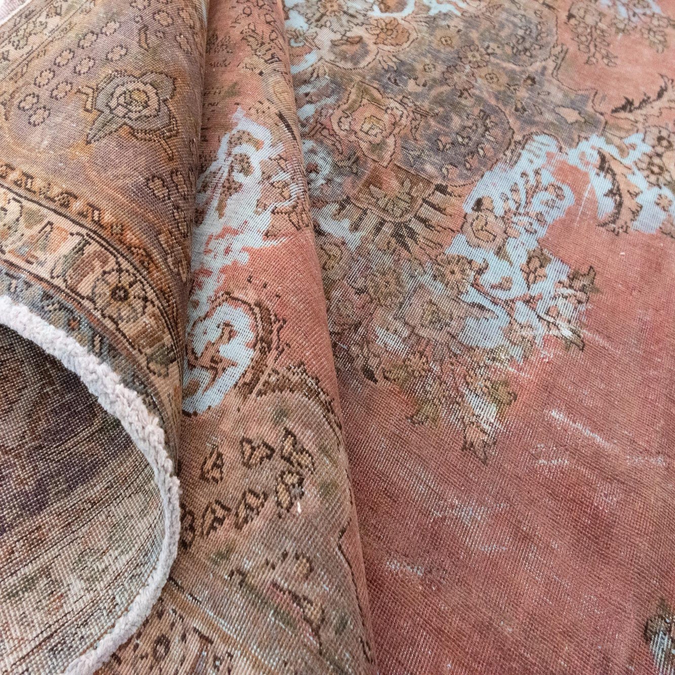 With its large dimensions and distinguished pattern, it serves as a focal point in a variety of interior settings. This piece is well-suited to anchor spacious living areas, formal dining rooms, or grand entryways where its scale and design can be fully appreciated. Its classical pattern complements antique furnishings, while the subdued color palette makes it a versatile complement to both traditional and transitional décor.