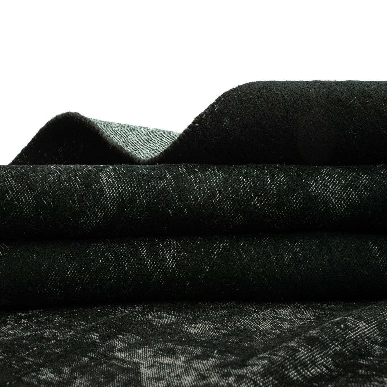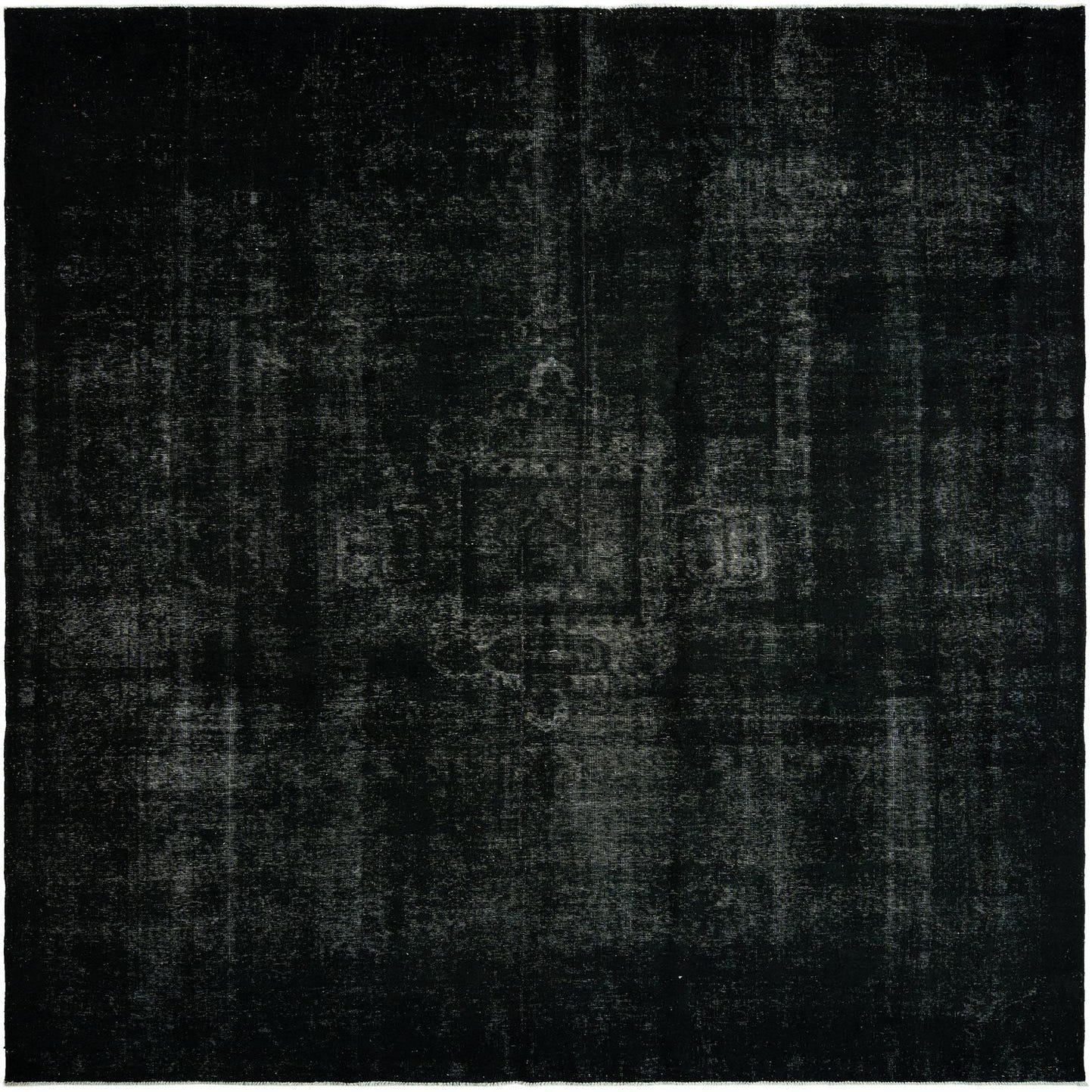 A 10x13 rectangular Rugs.com Vintage Persian rug in dark green with a distressed, faded traditional pattern, suitable for a living room.